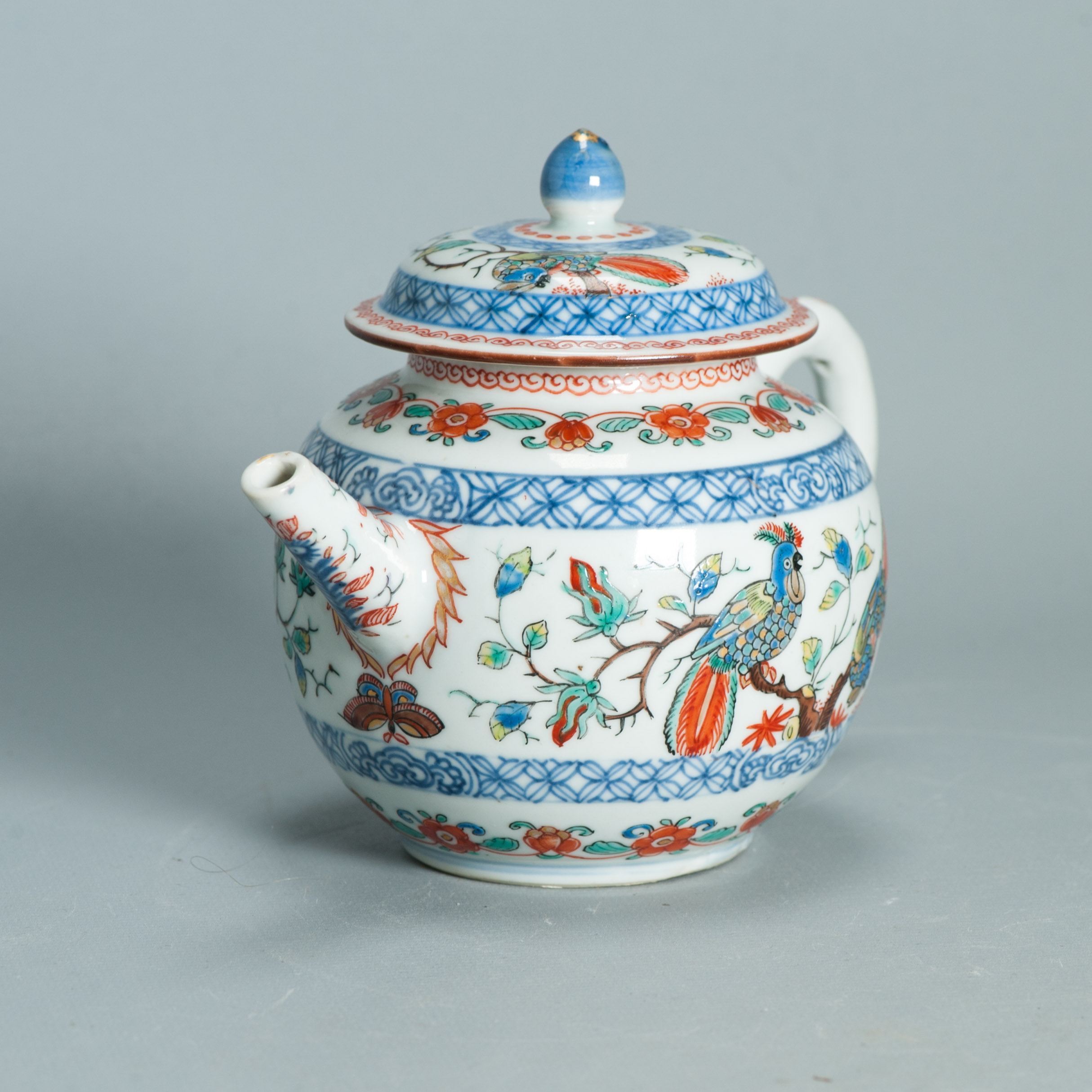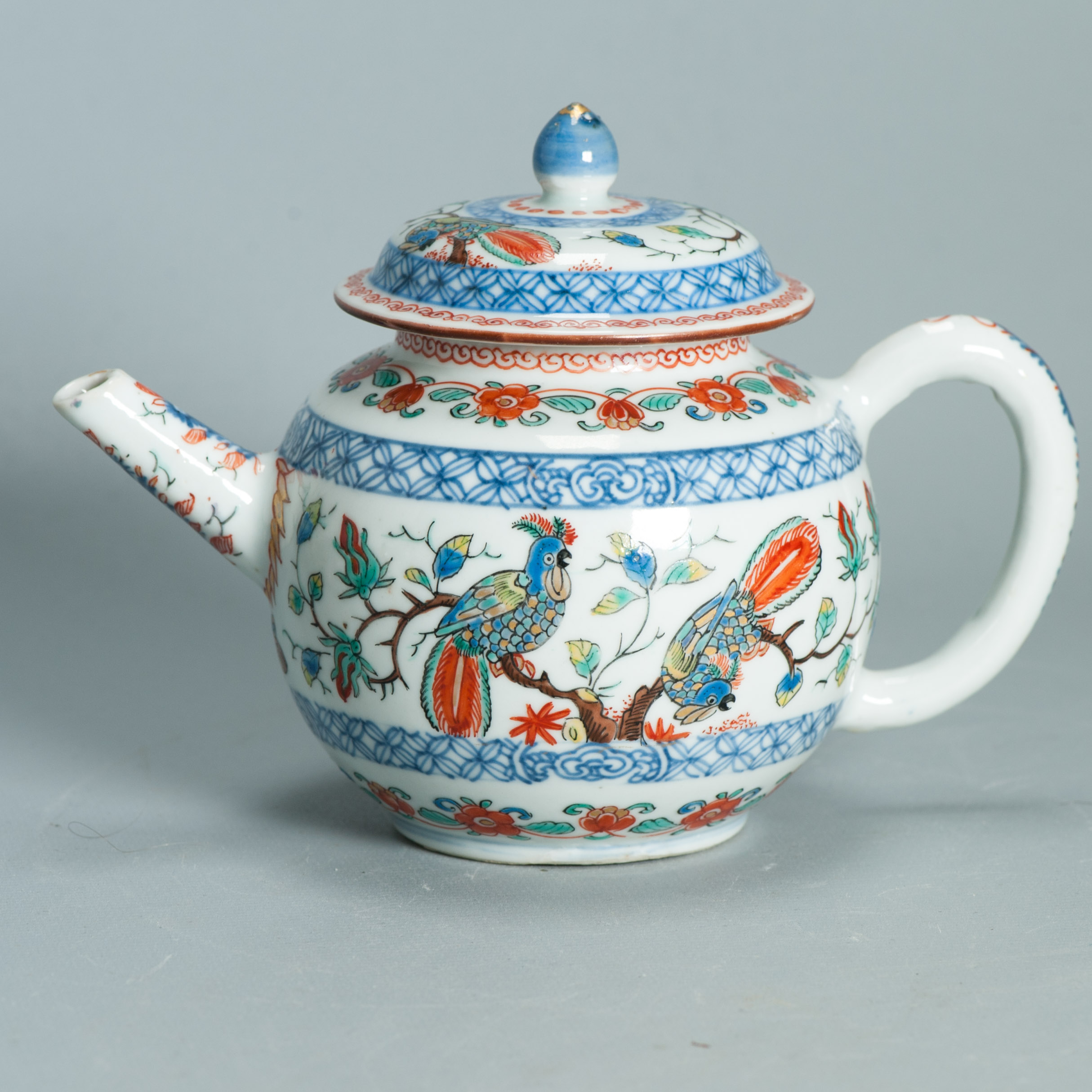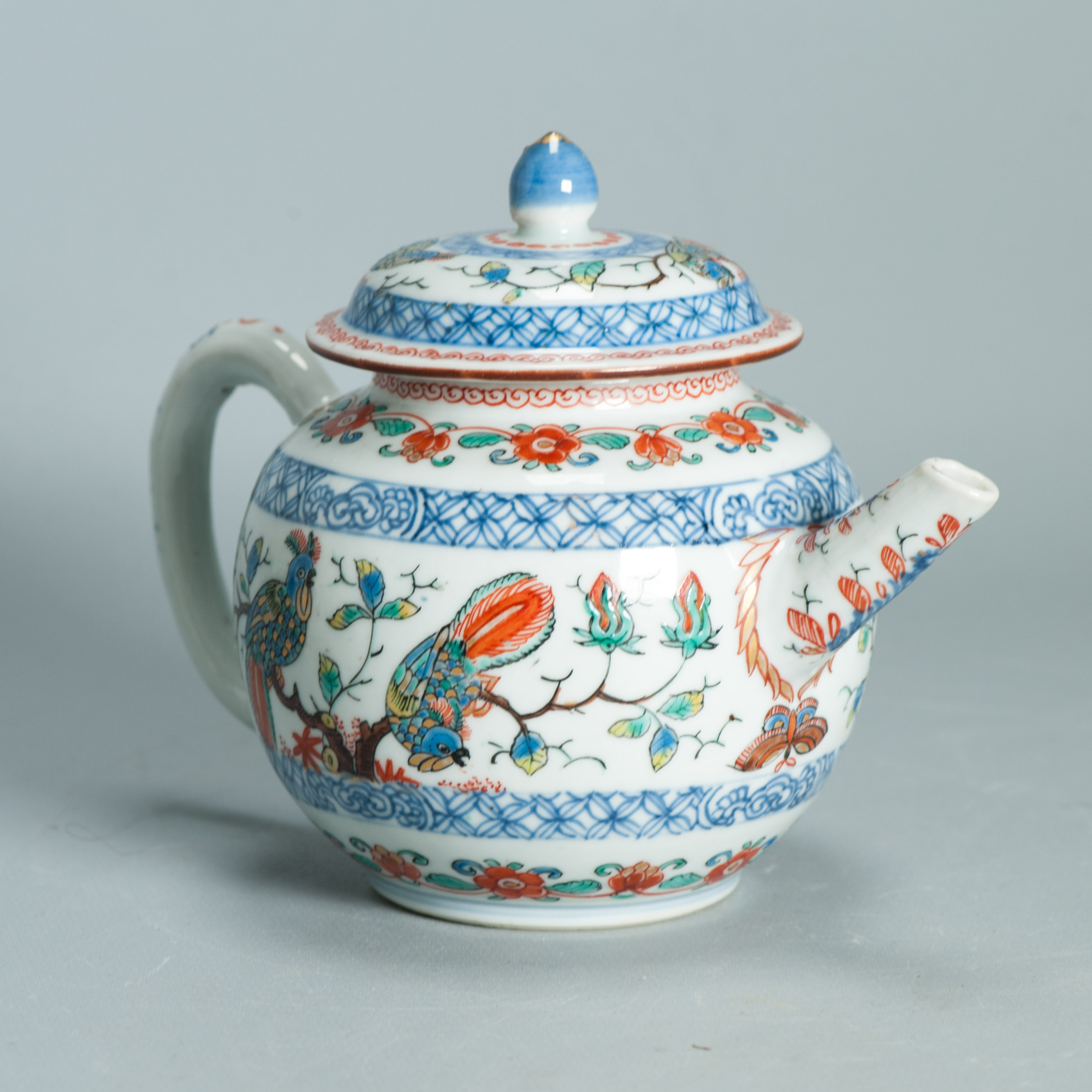 1498 Antique Chinese Tea Pot with Parrots and Flowers in Kakiemon Amsterdam Bont Style