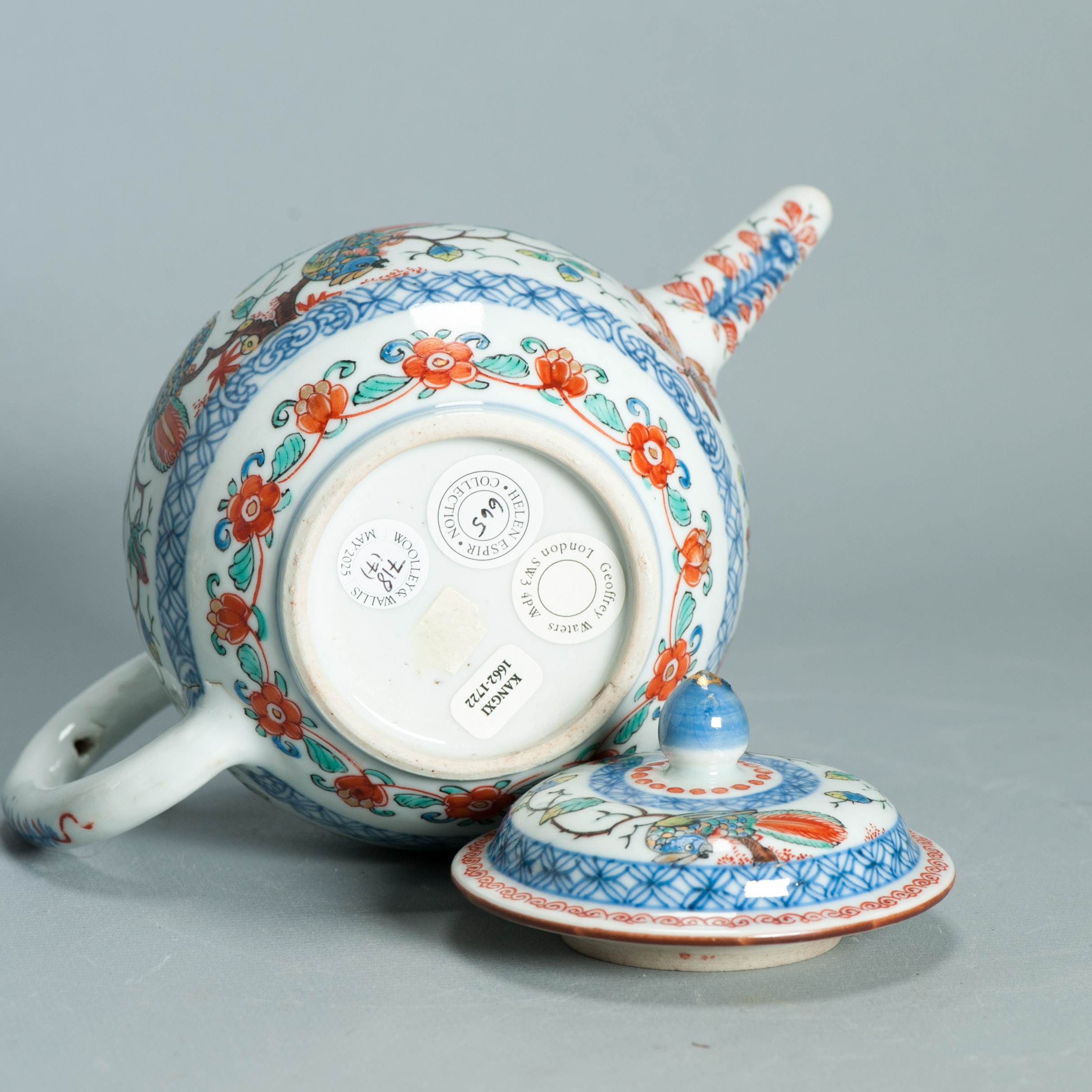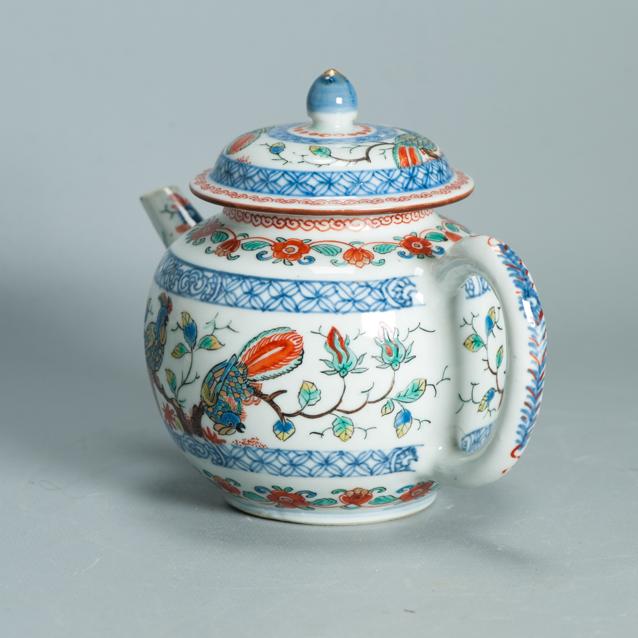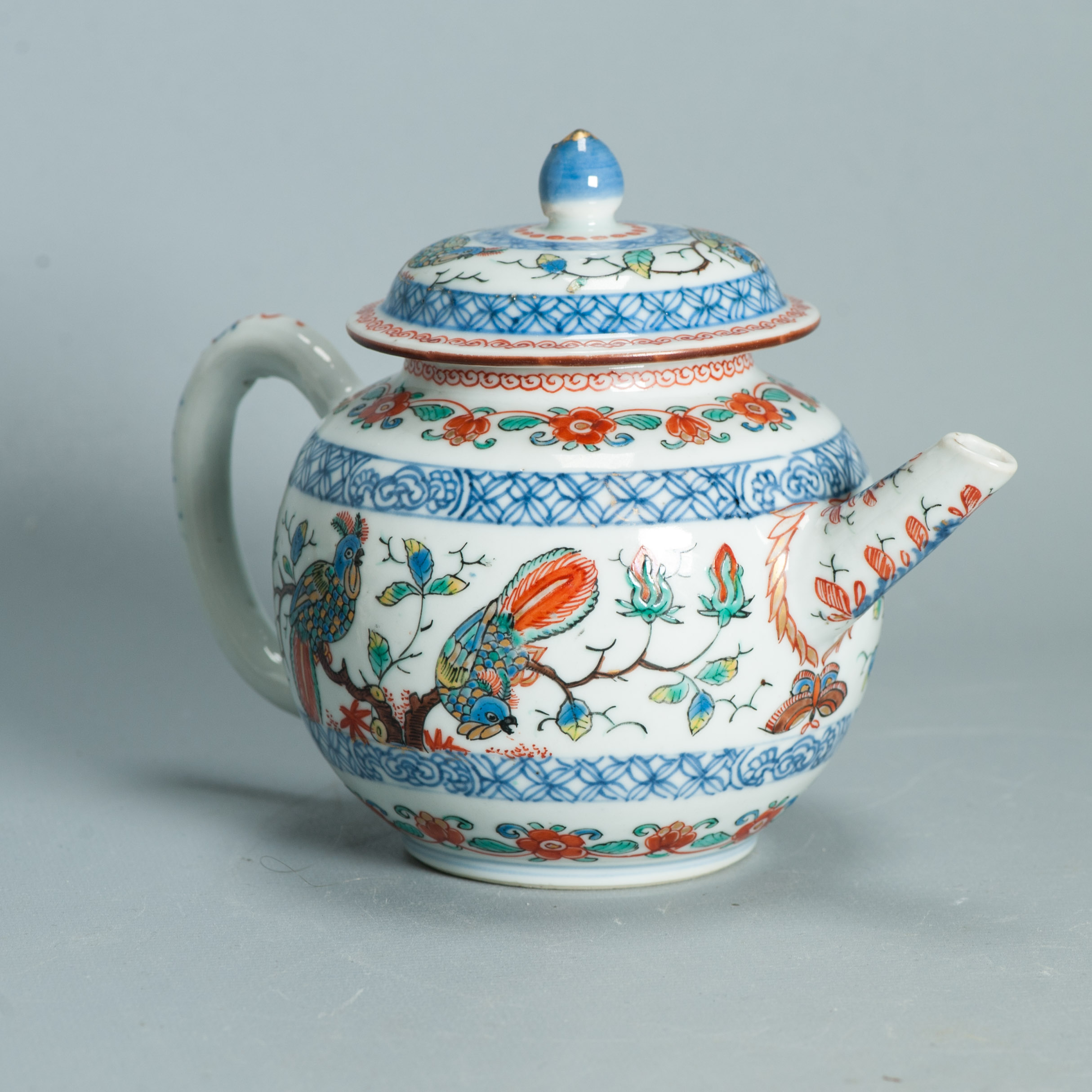 1498 Antique Chinese Tea Pot with Parrots and Flowers in Kakiemon Amsterdam Bont Style