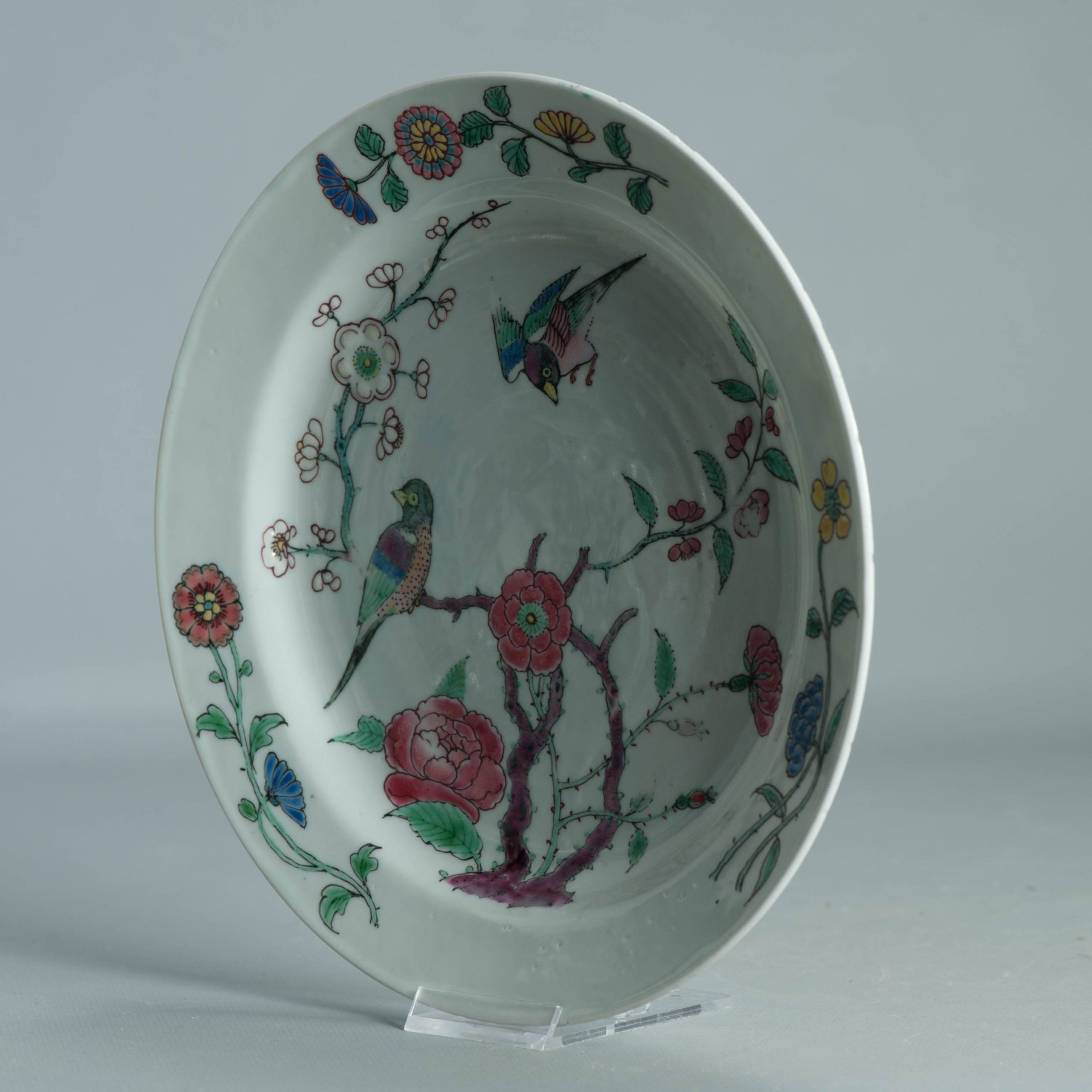 1506 Antique Chinese Porcelain Plate With Famille Rose Decoration of Birds and Flowers