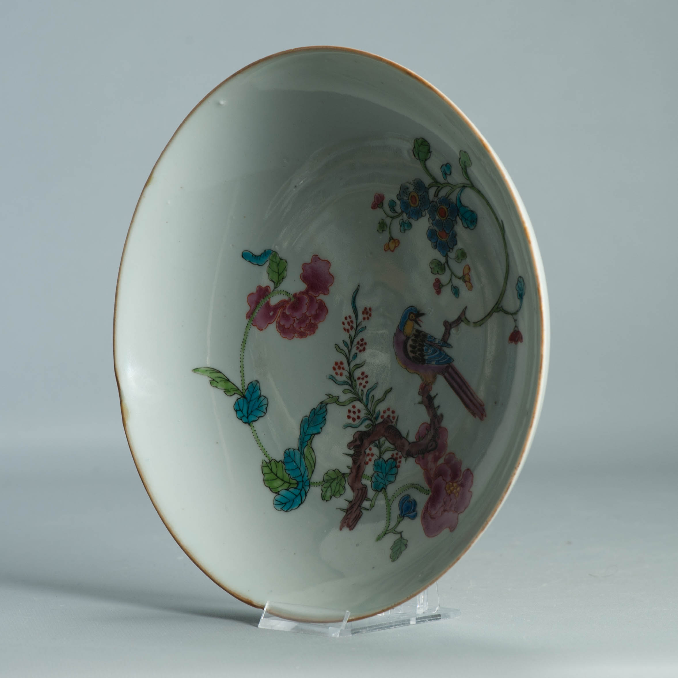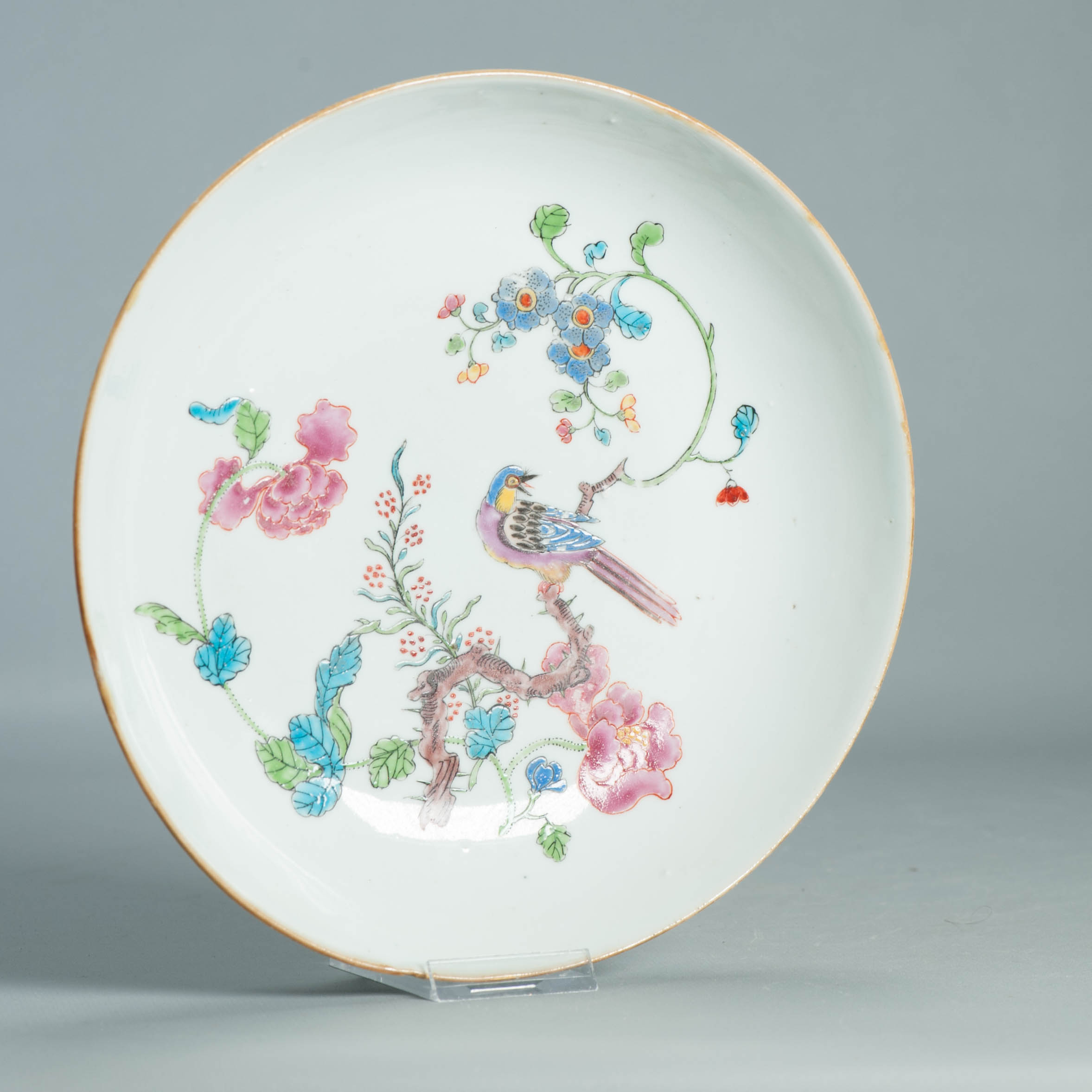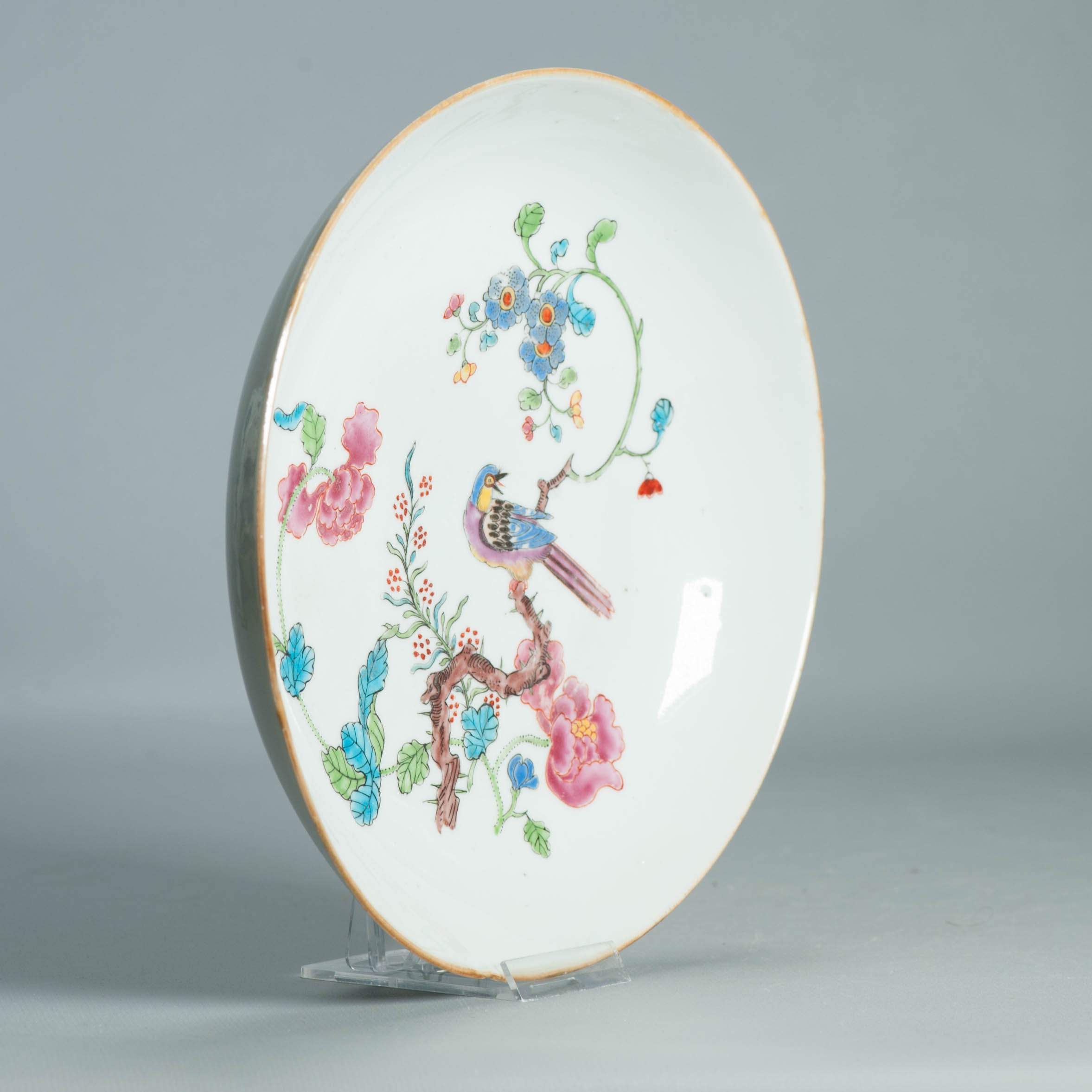 1507 Antique Chinese Porcelain Plate With Famille Rose Decoration of Birds and Flowers