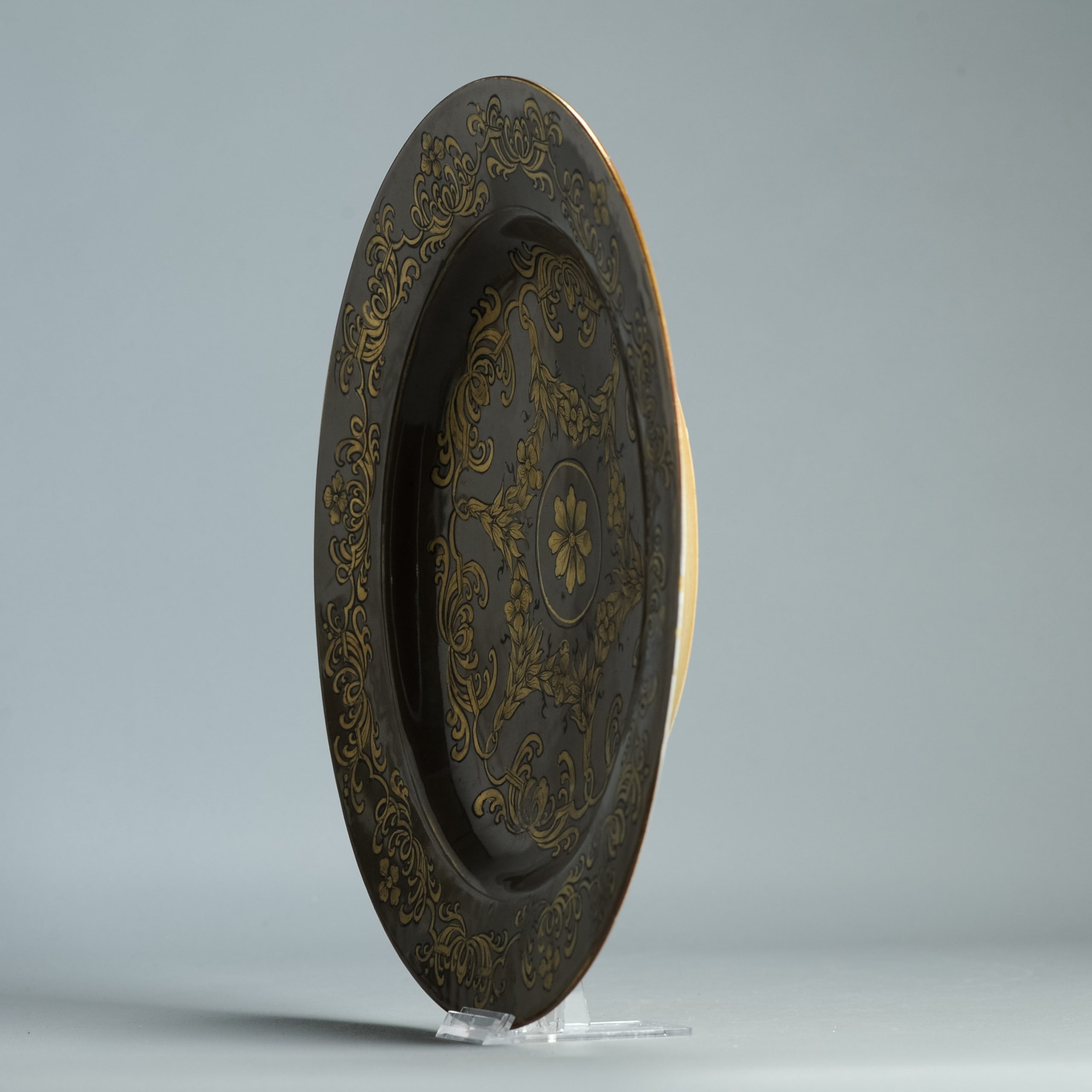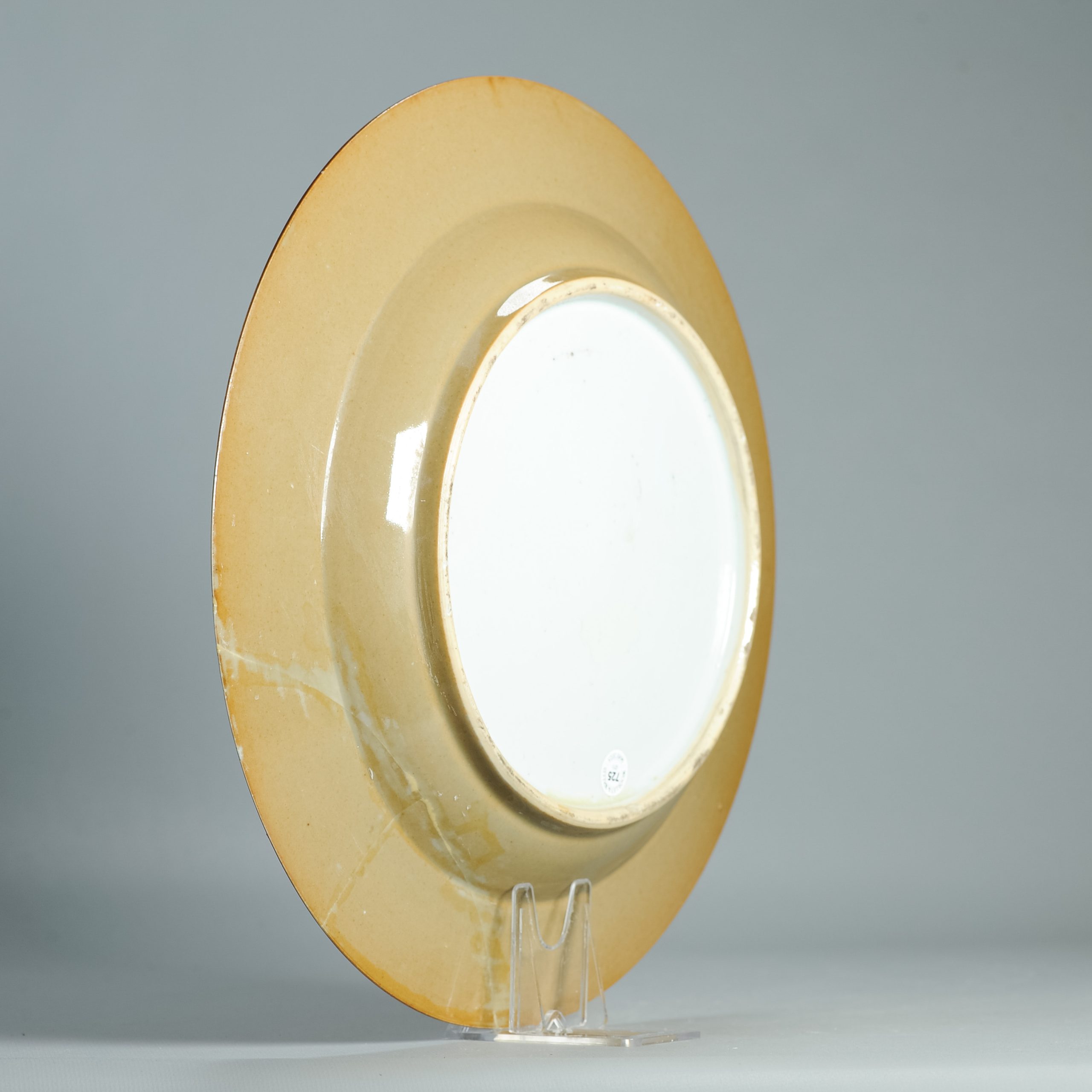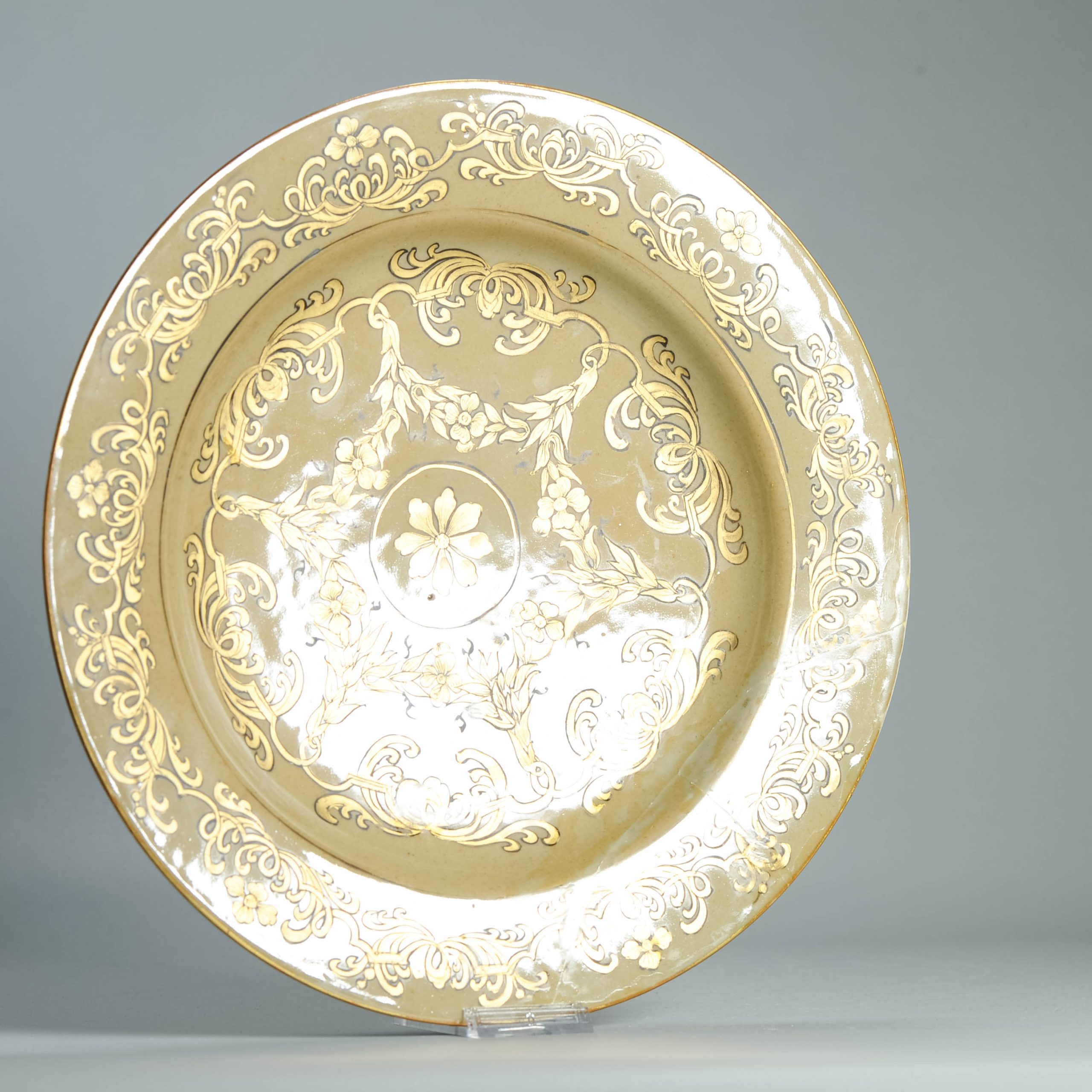 1510 Antique Chinese Cafe au Lait Porcelain Plate With European gold Redecoration
