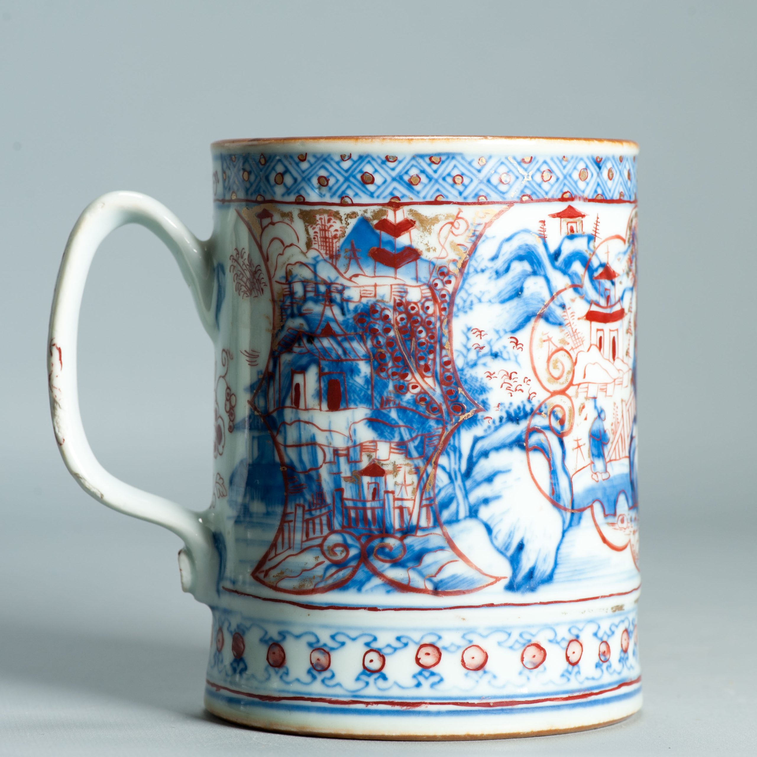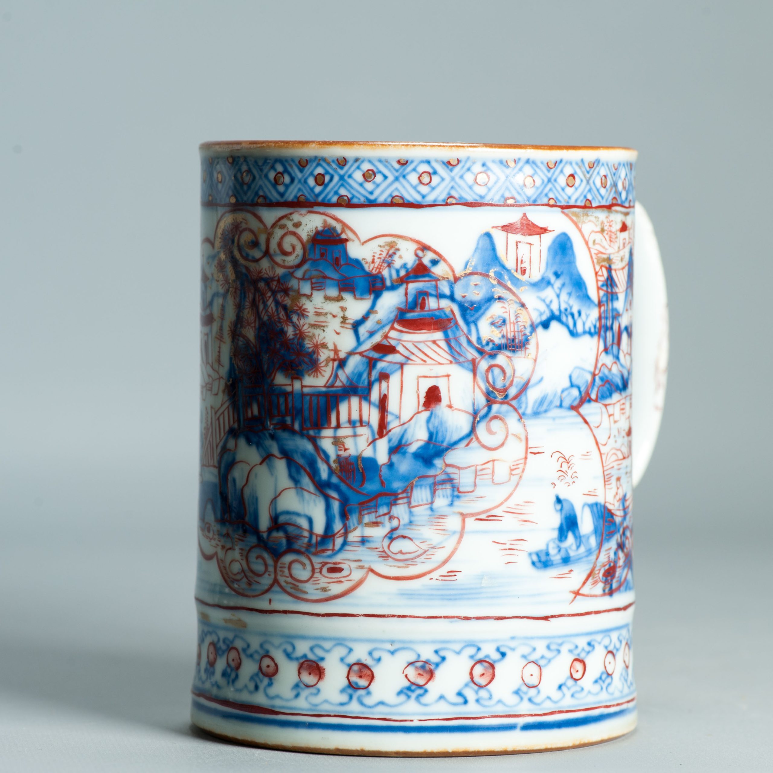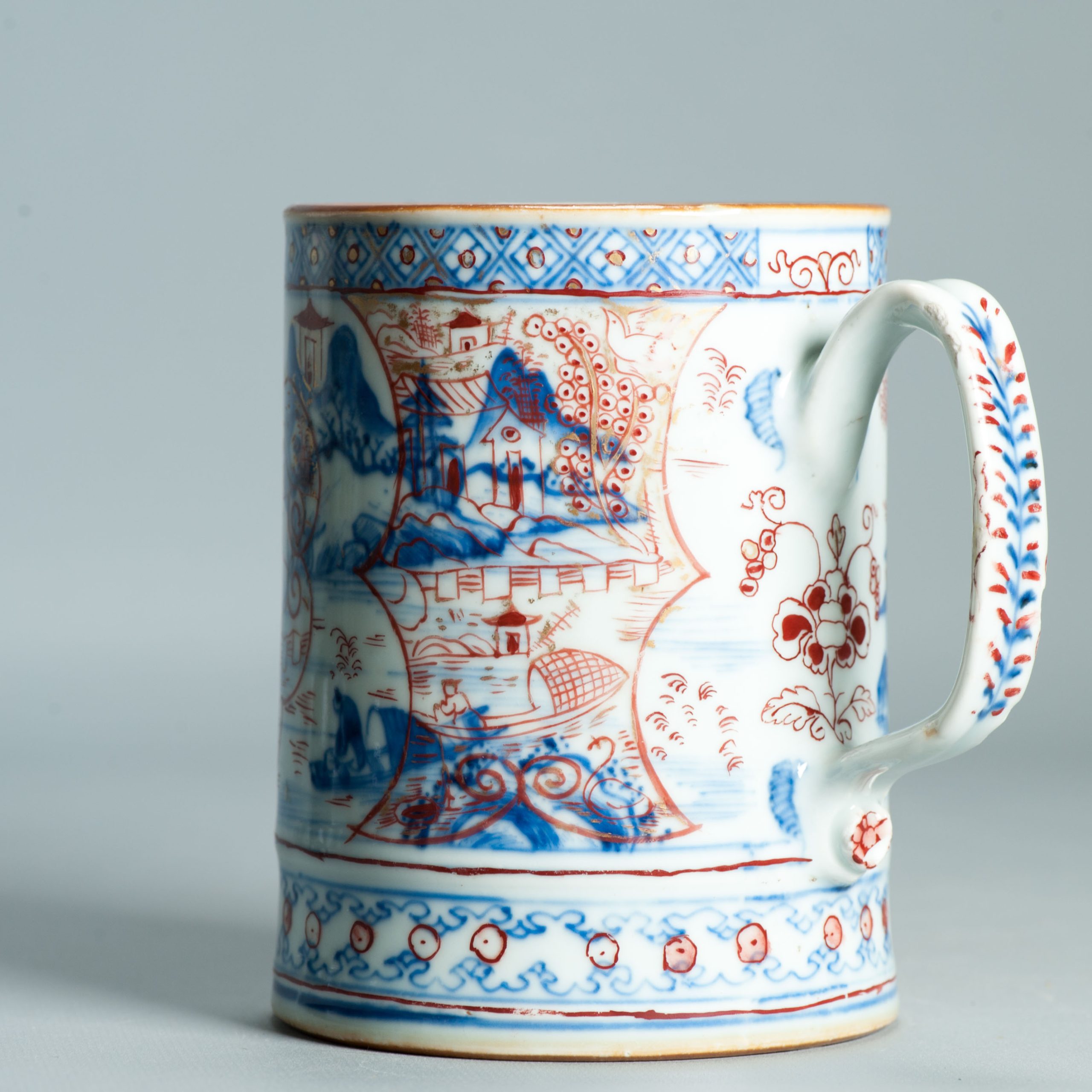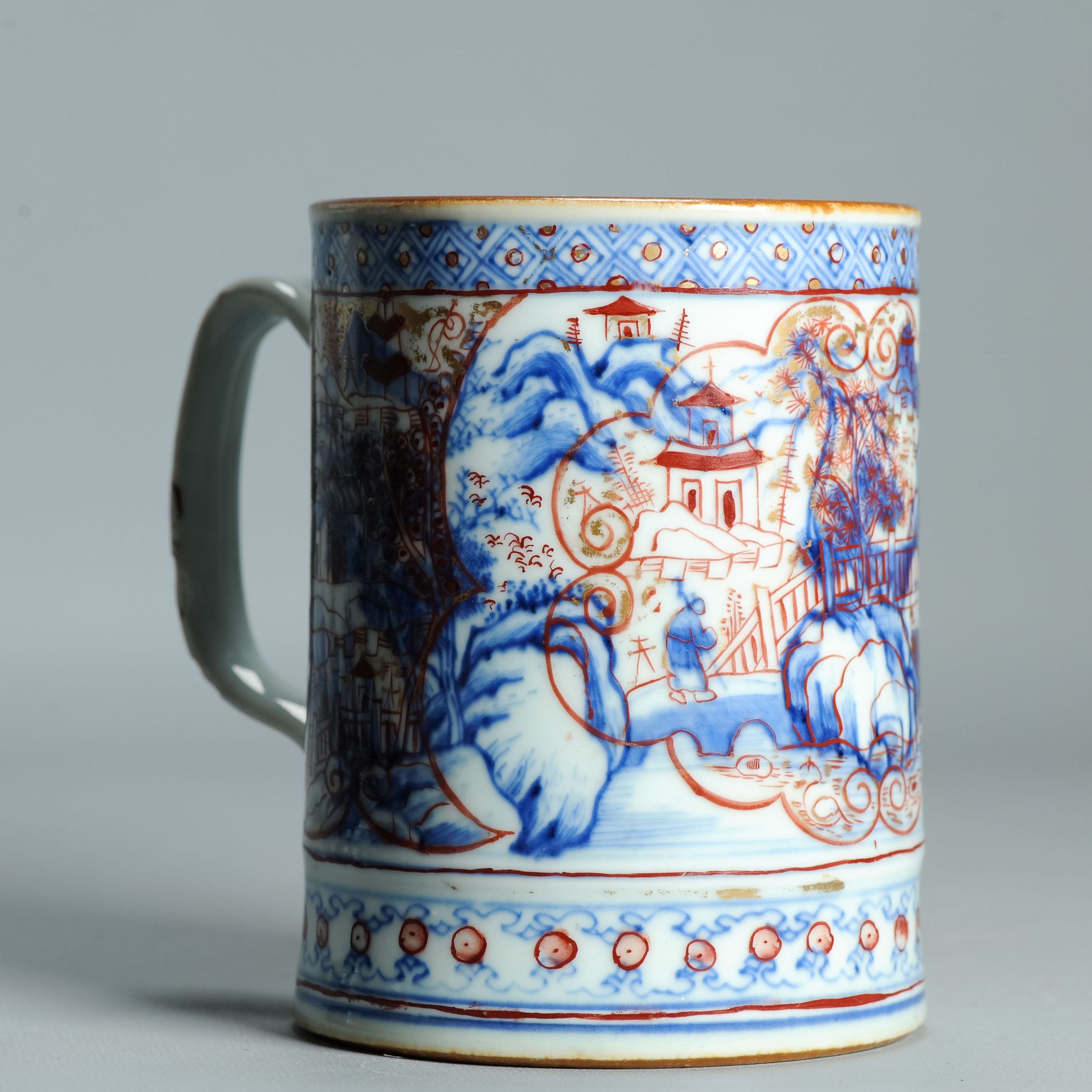 1512 Antique Chinese Blue and White Tankard with European Imari Decoration of figures