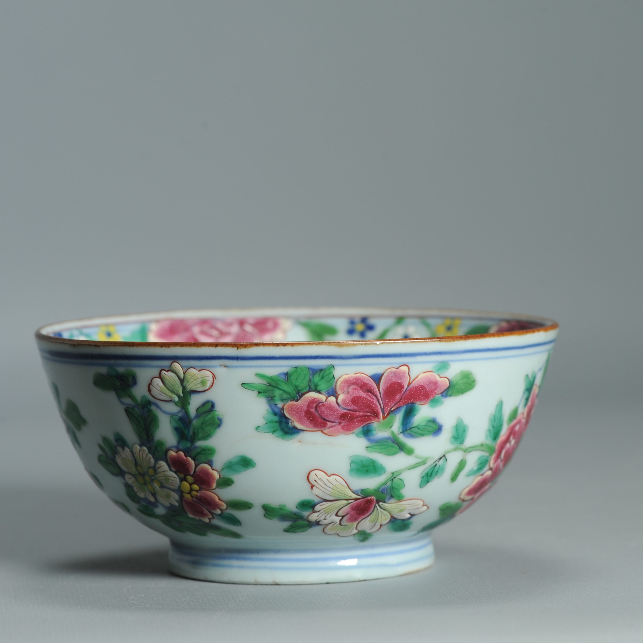 1518 Antique Kangxi Chinese Porcelain Blue and white Bowl with full European Redecoration