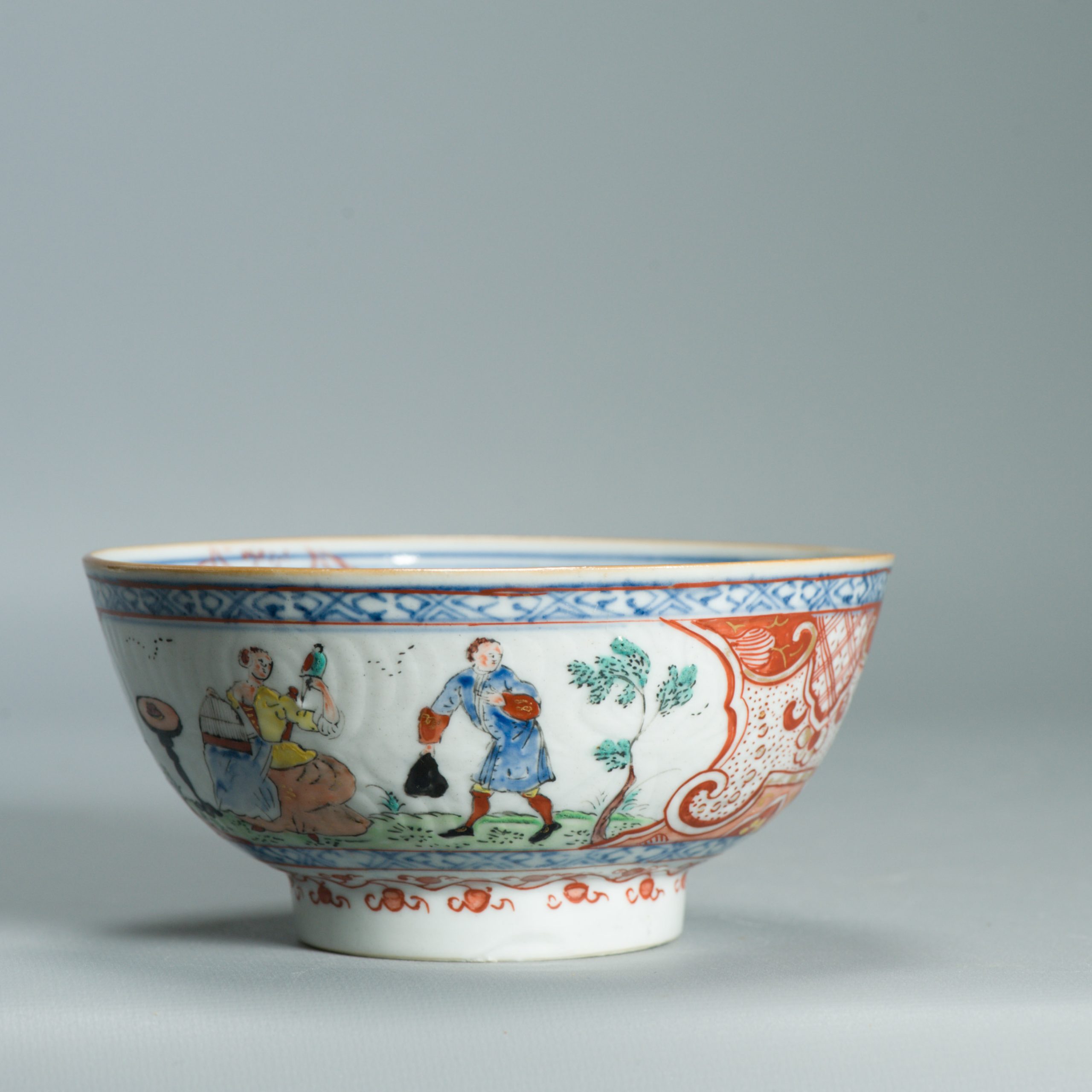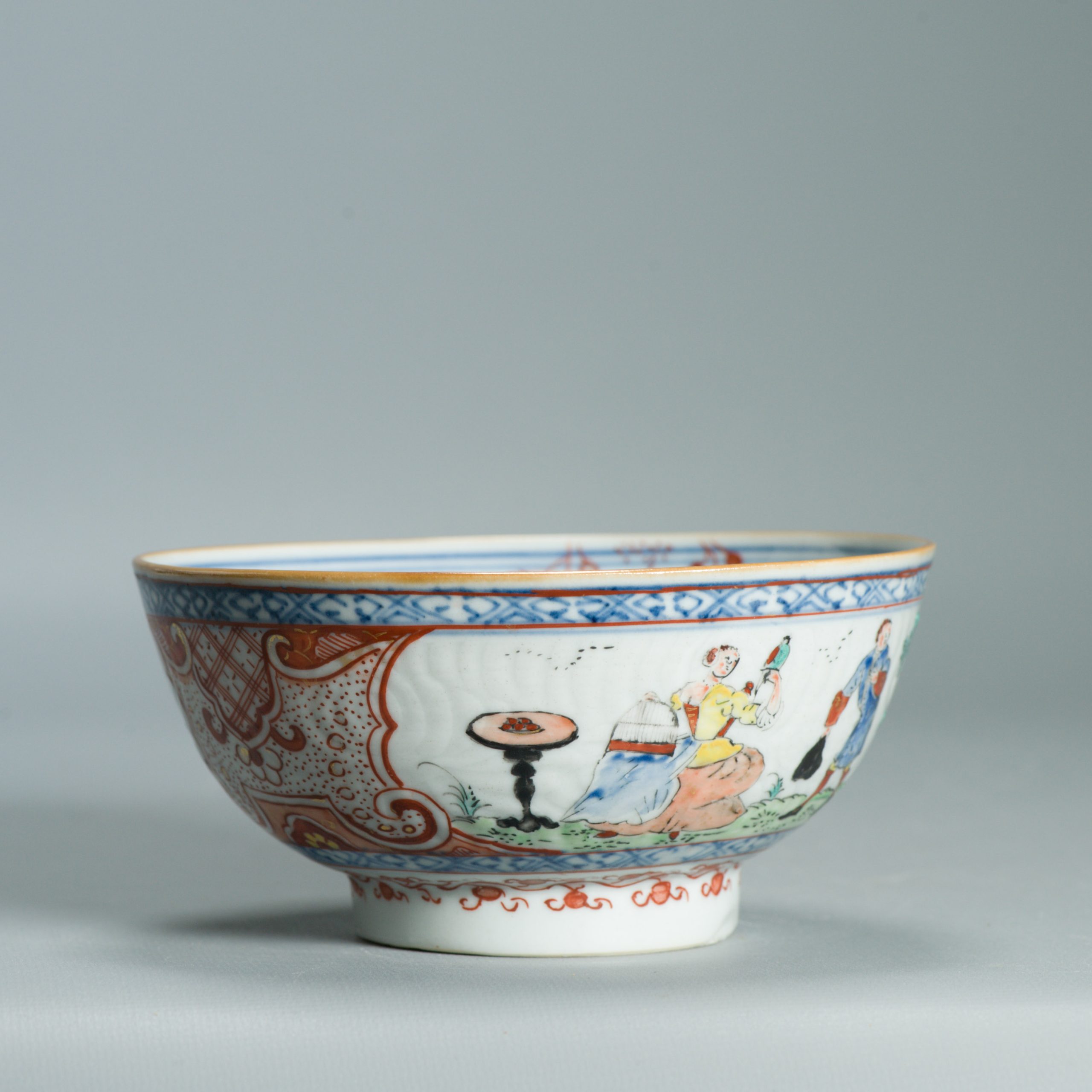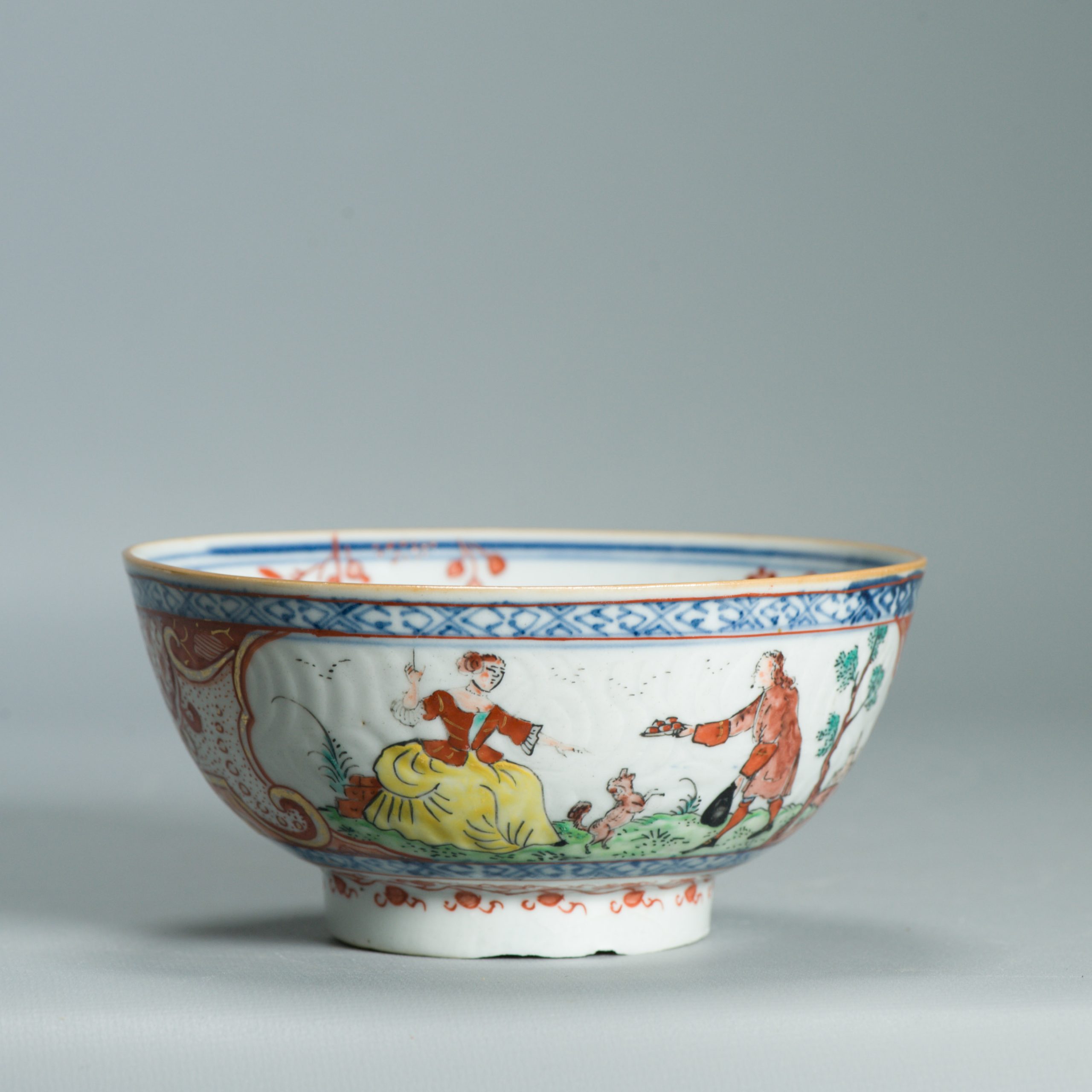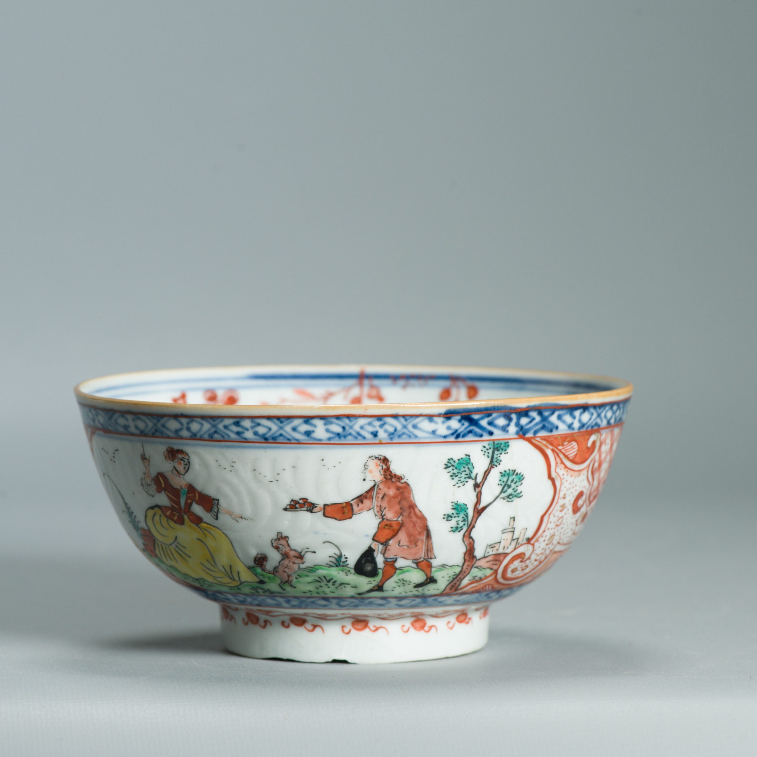 If there is a male figure nearby, as in your bowl, his presence reinforces the idea of courtship or seduction.