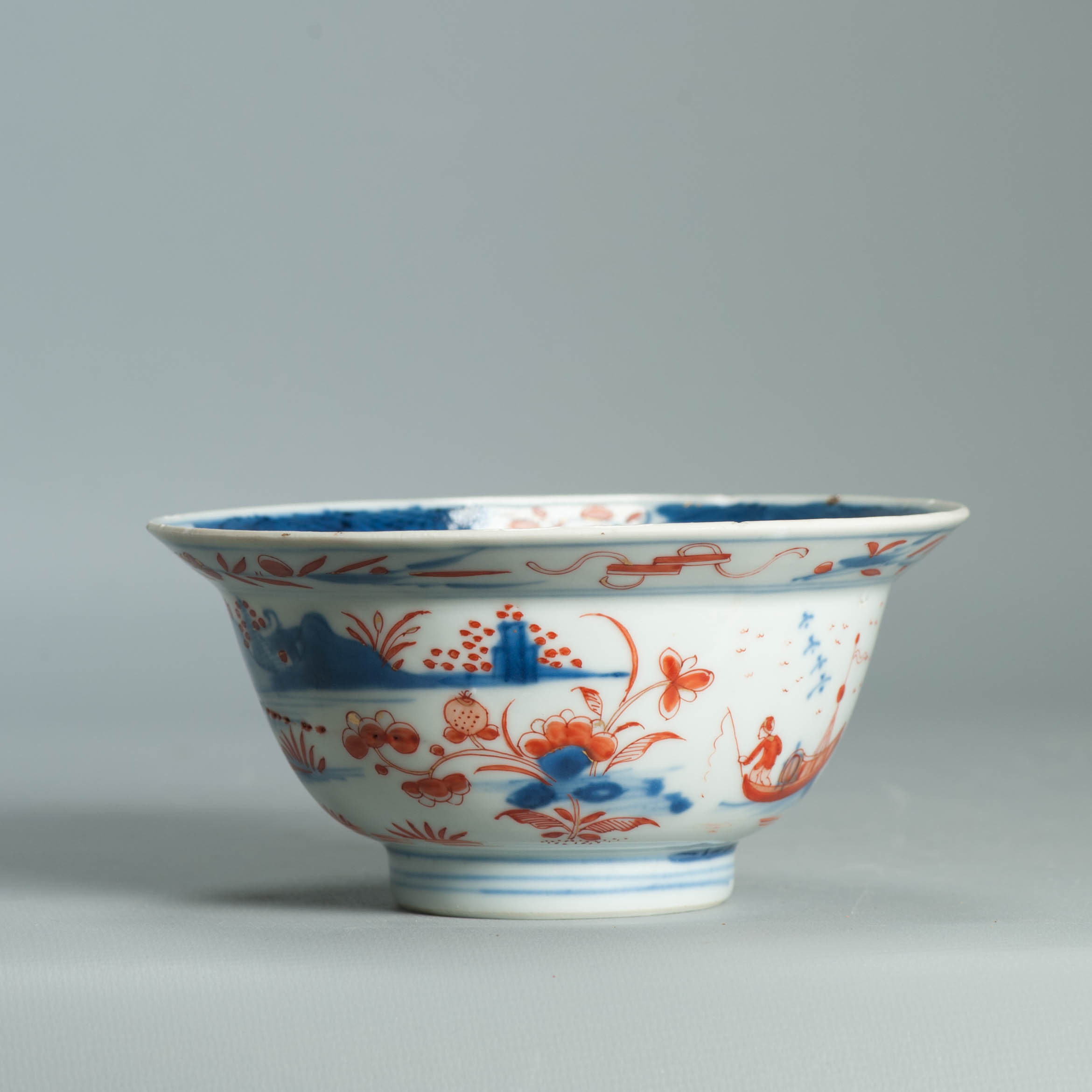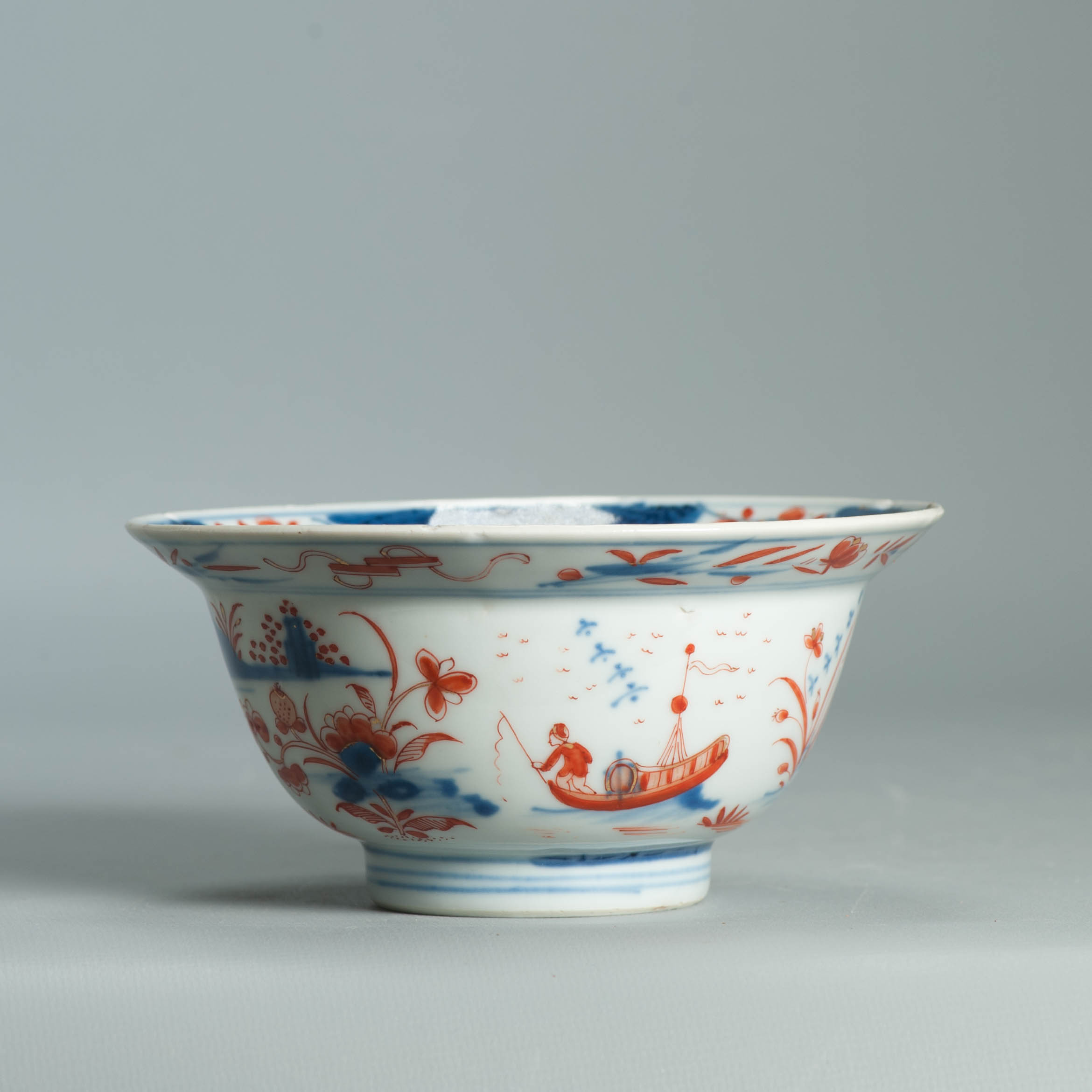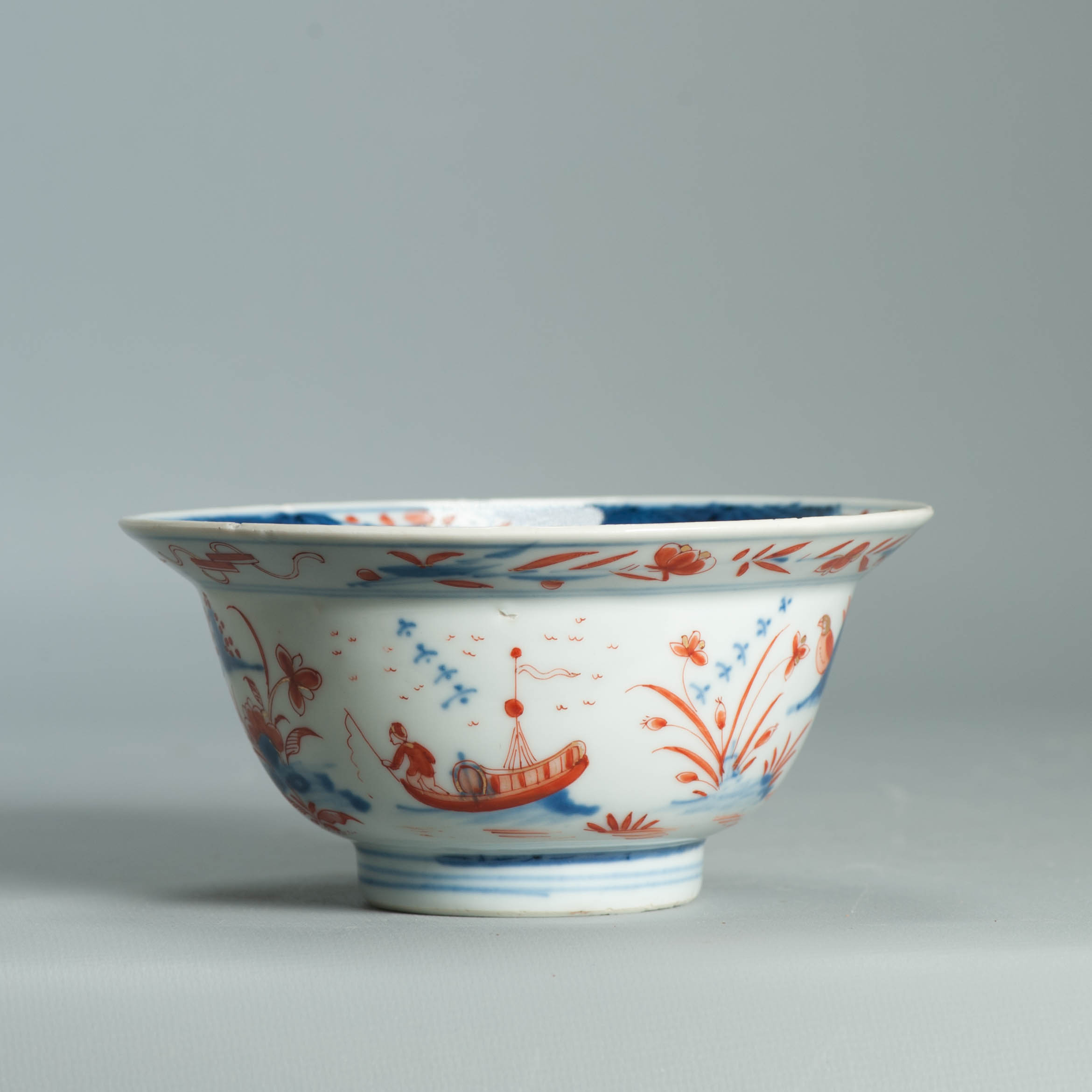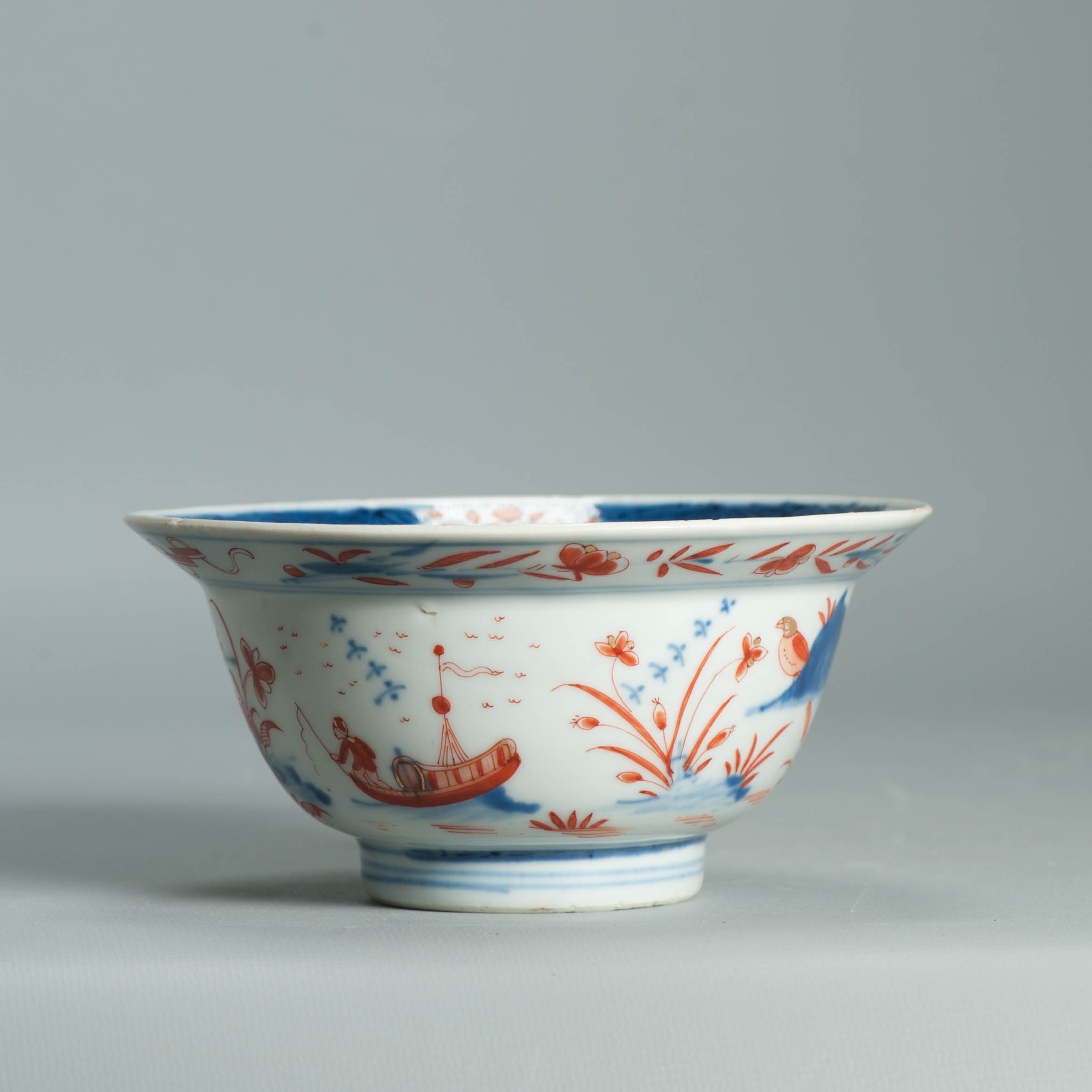 1554 Antique Chinese Porcelain Blue and white Klapmuts Bowl with European Redecoration