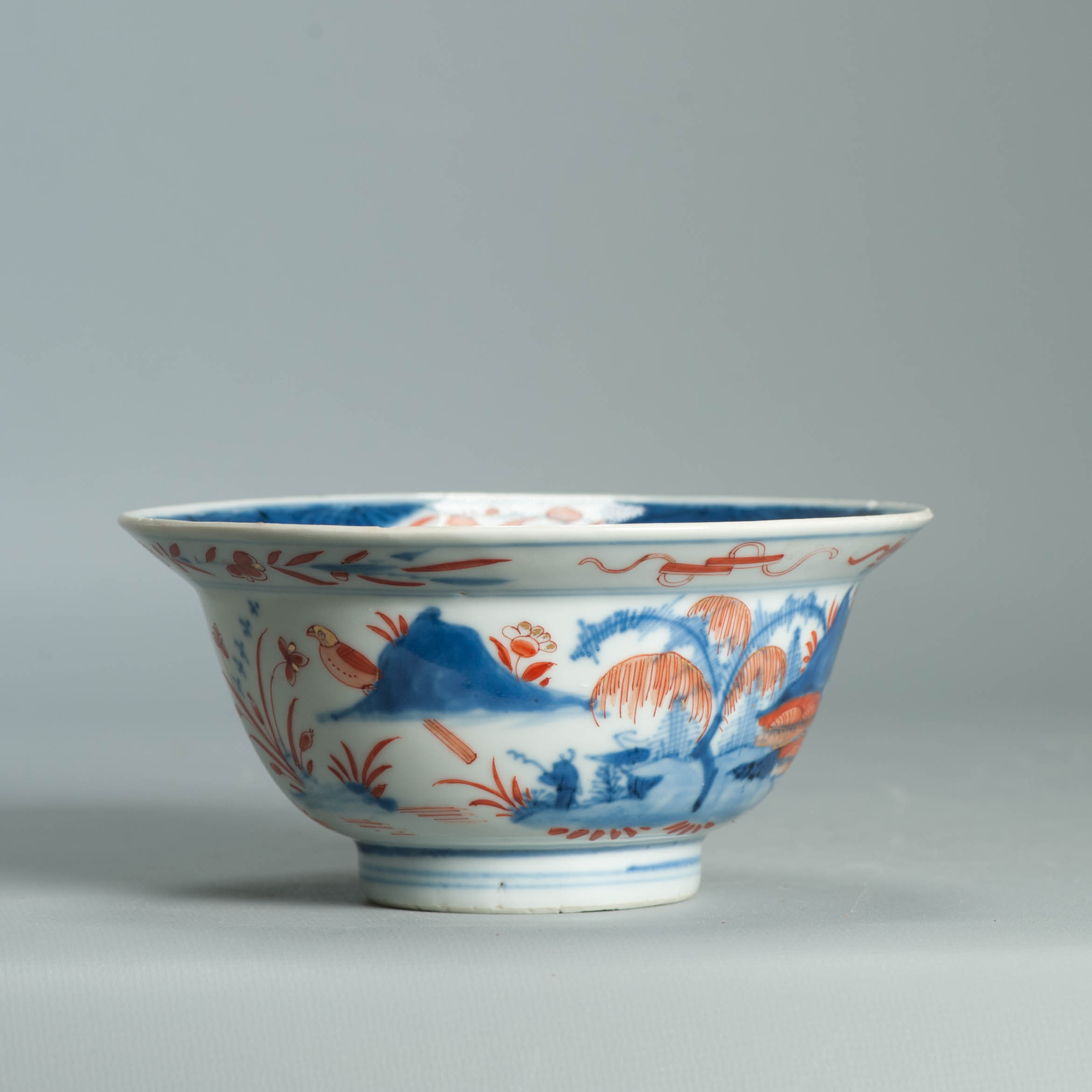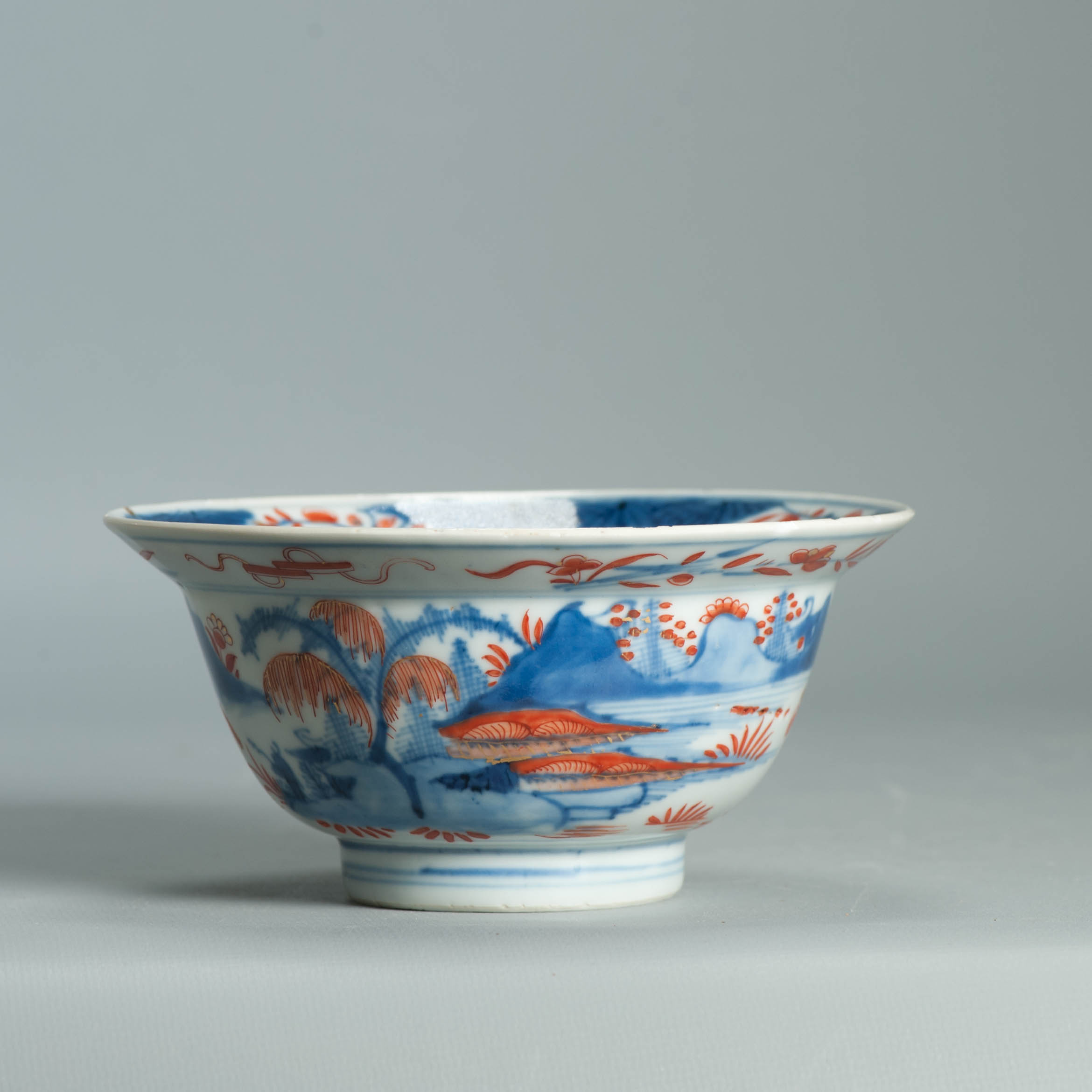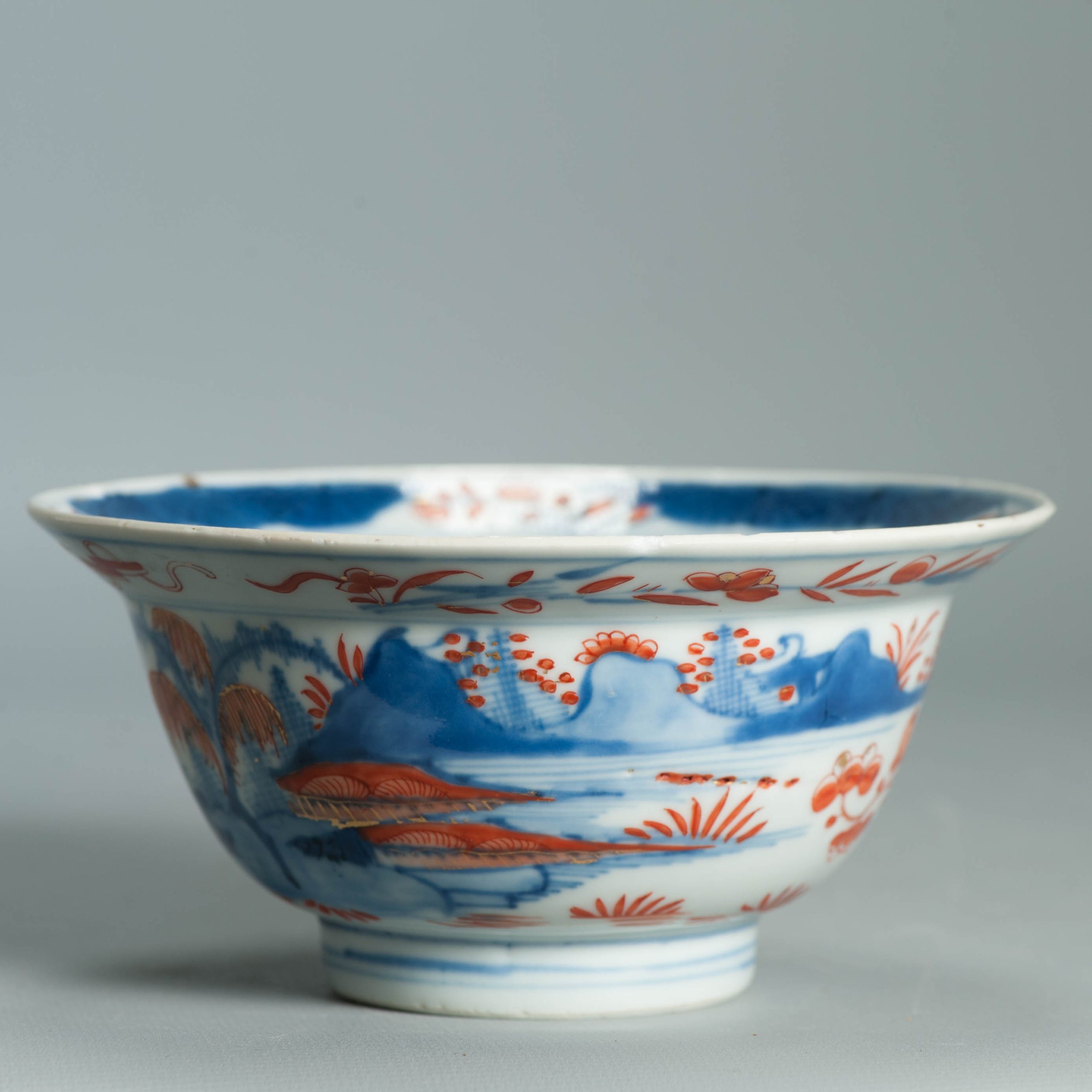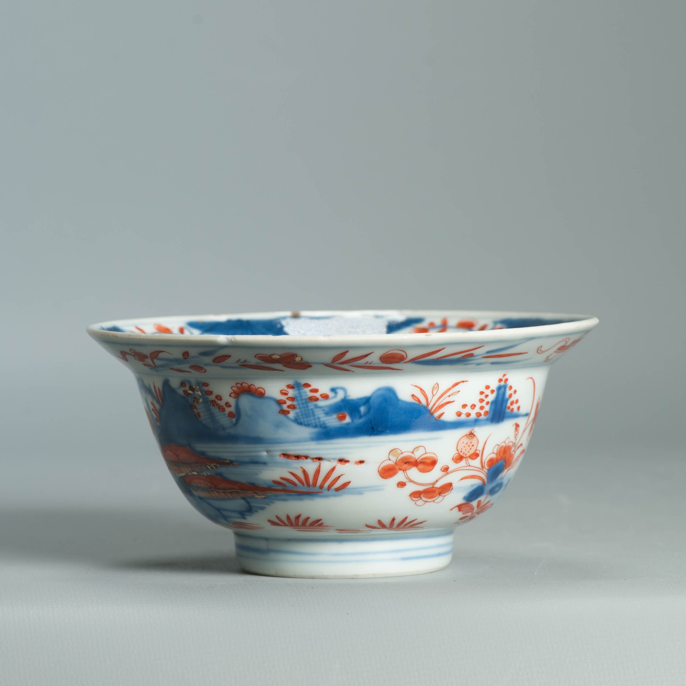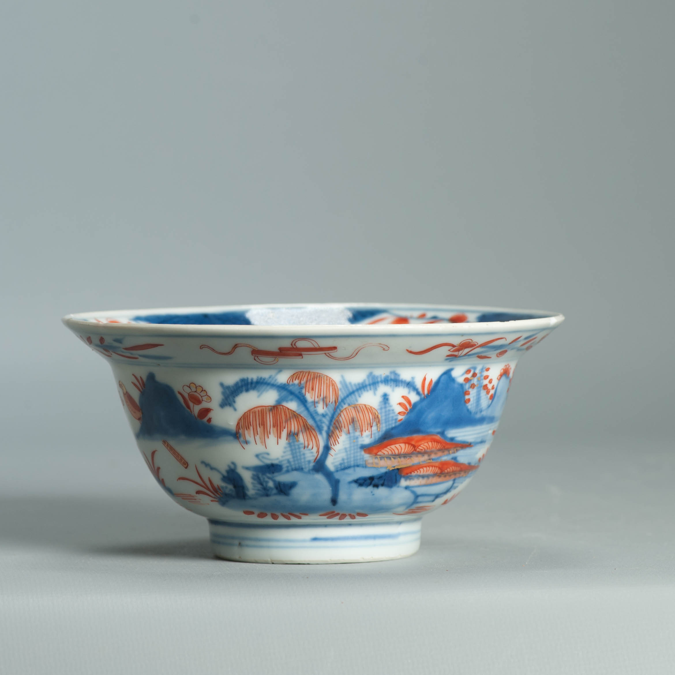 1554 Antique Chinese Porcelain Blue and white Klapmuts Bowl with European Redecoration