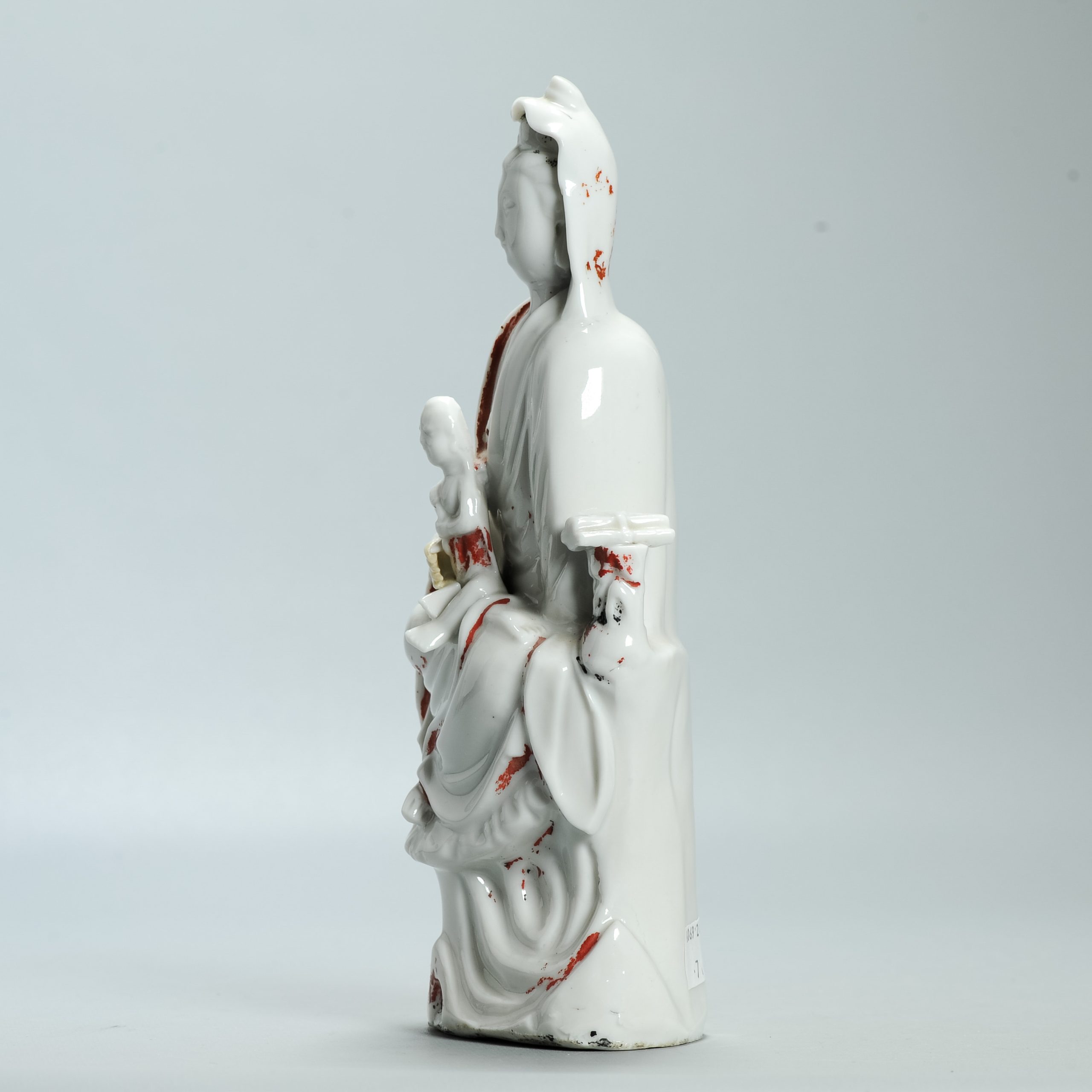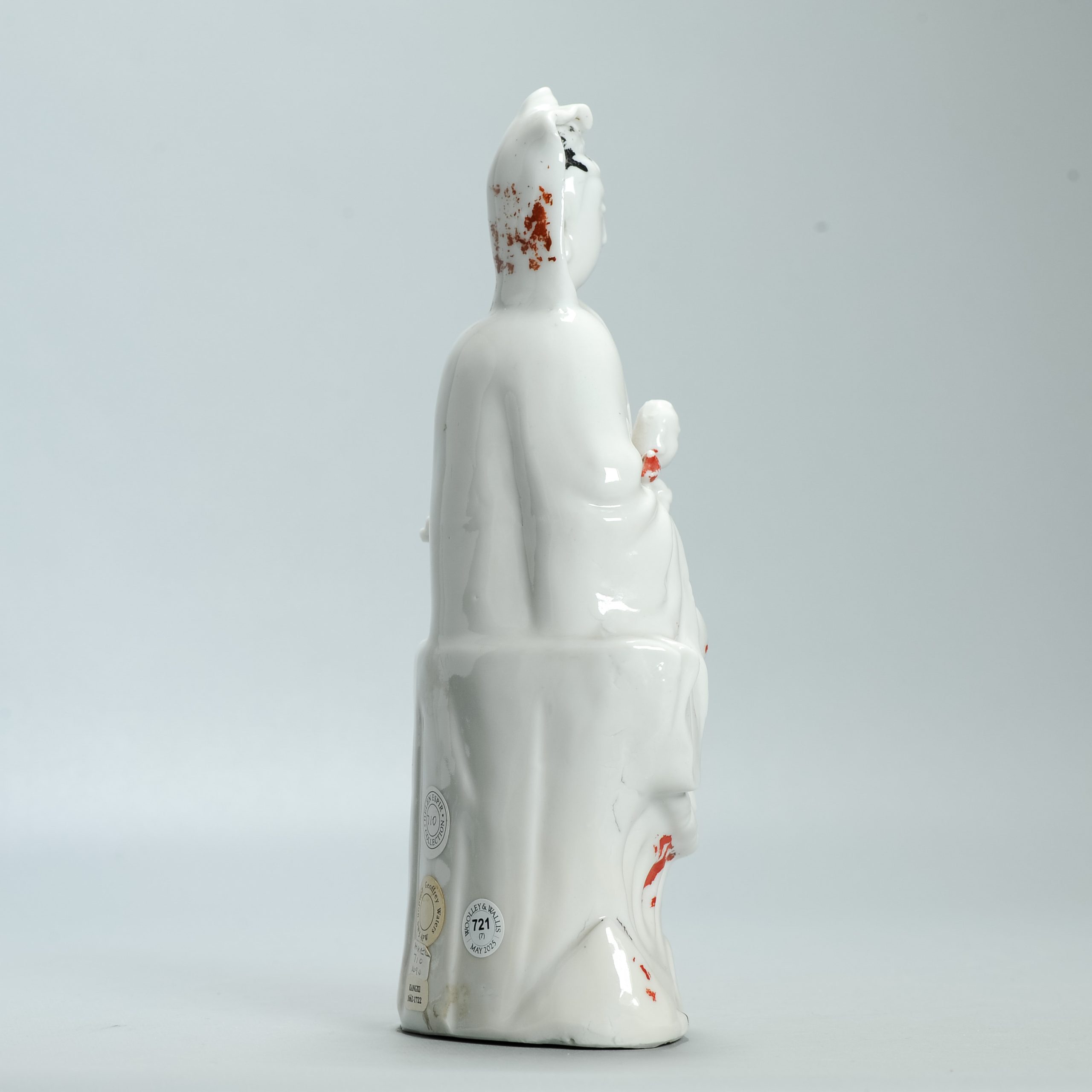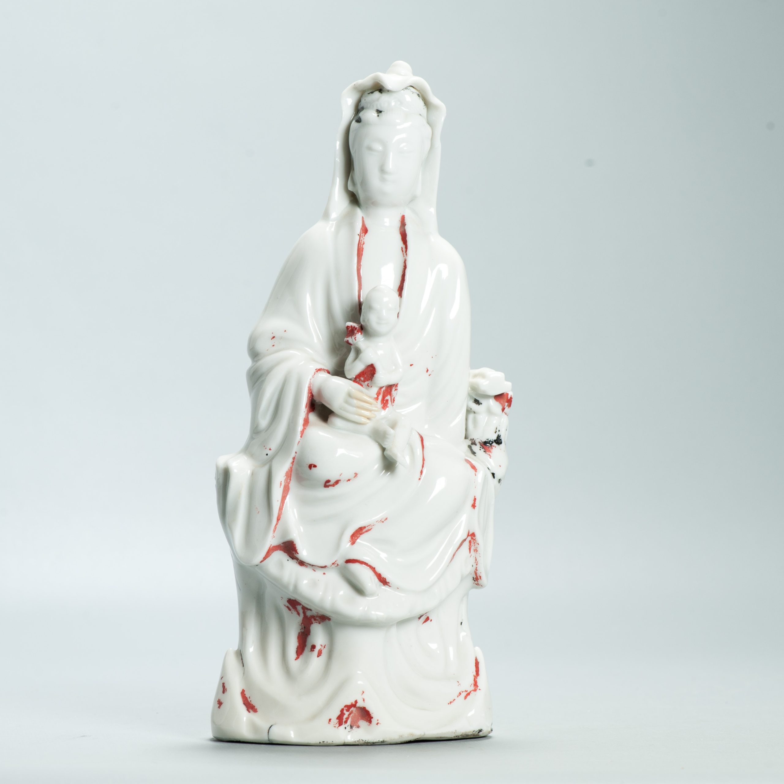 1564 Antique 17th C Chinese Dehua Blanc de Chine Statue Redecorated in Europe. Most Likely in the UK
