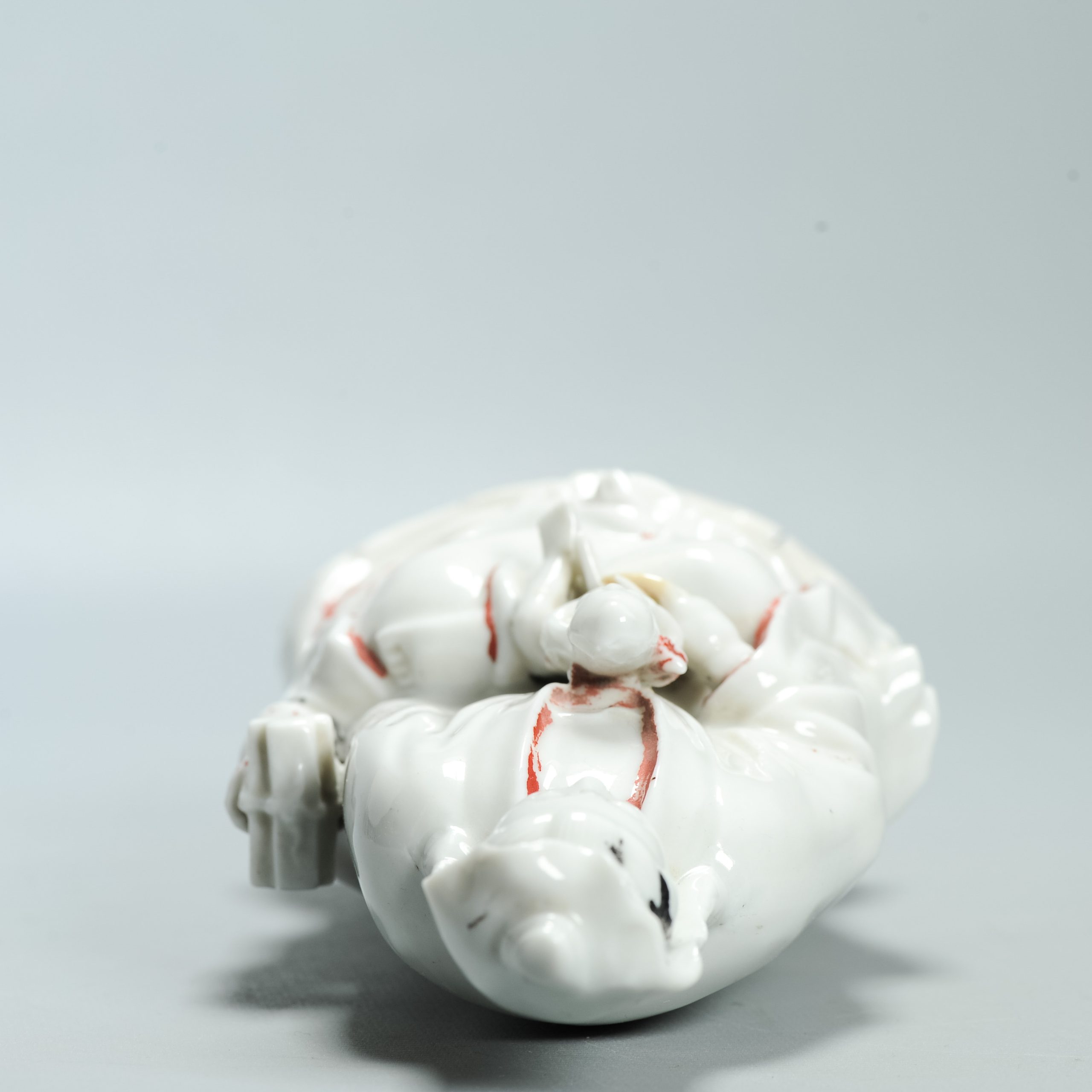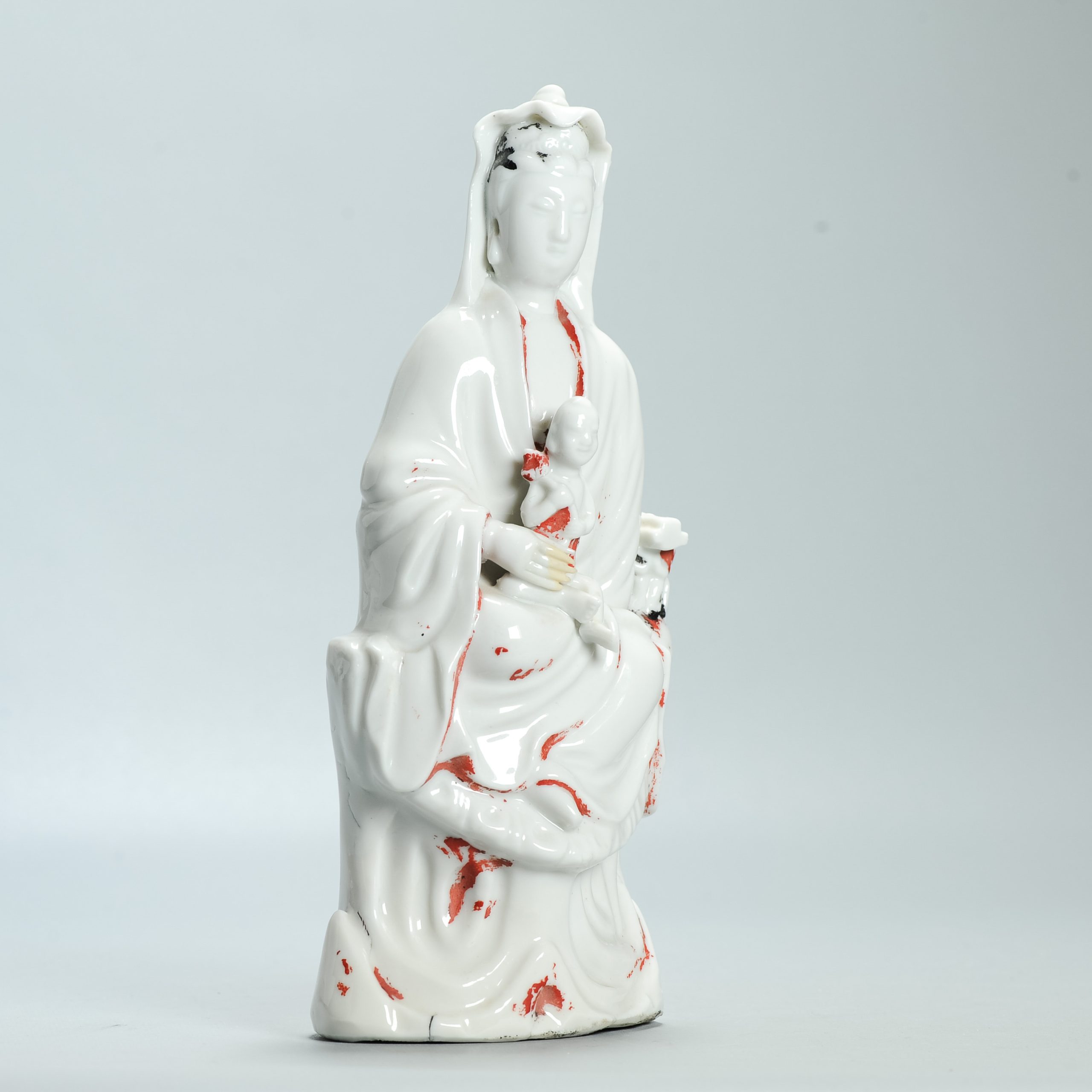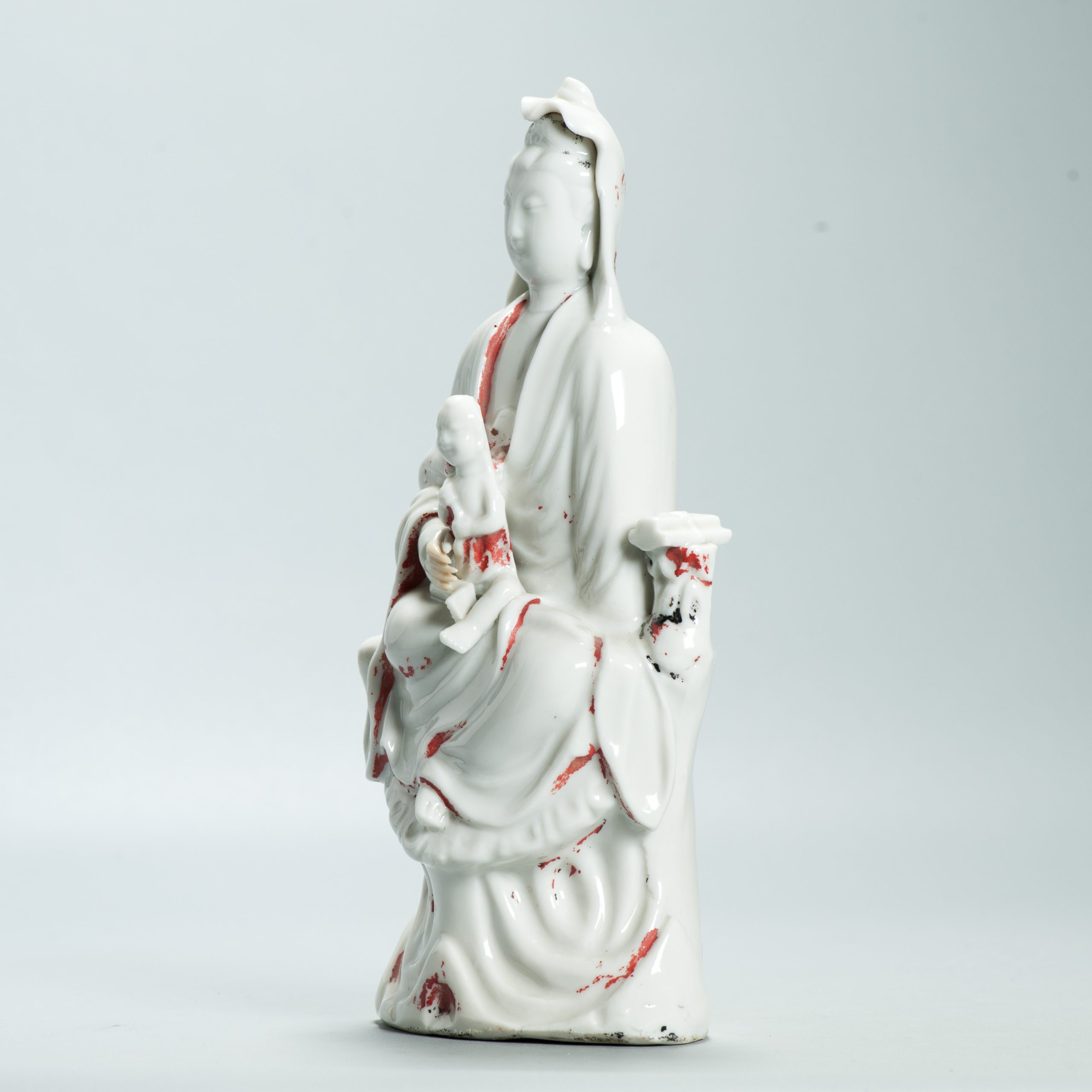 1564 Antique 17th C Chinese Dehua Blanc de Chine Statue Redecorated in Europe. Most Likely in the UK