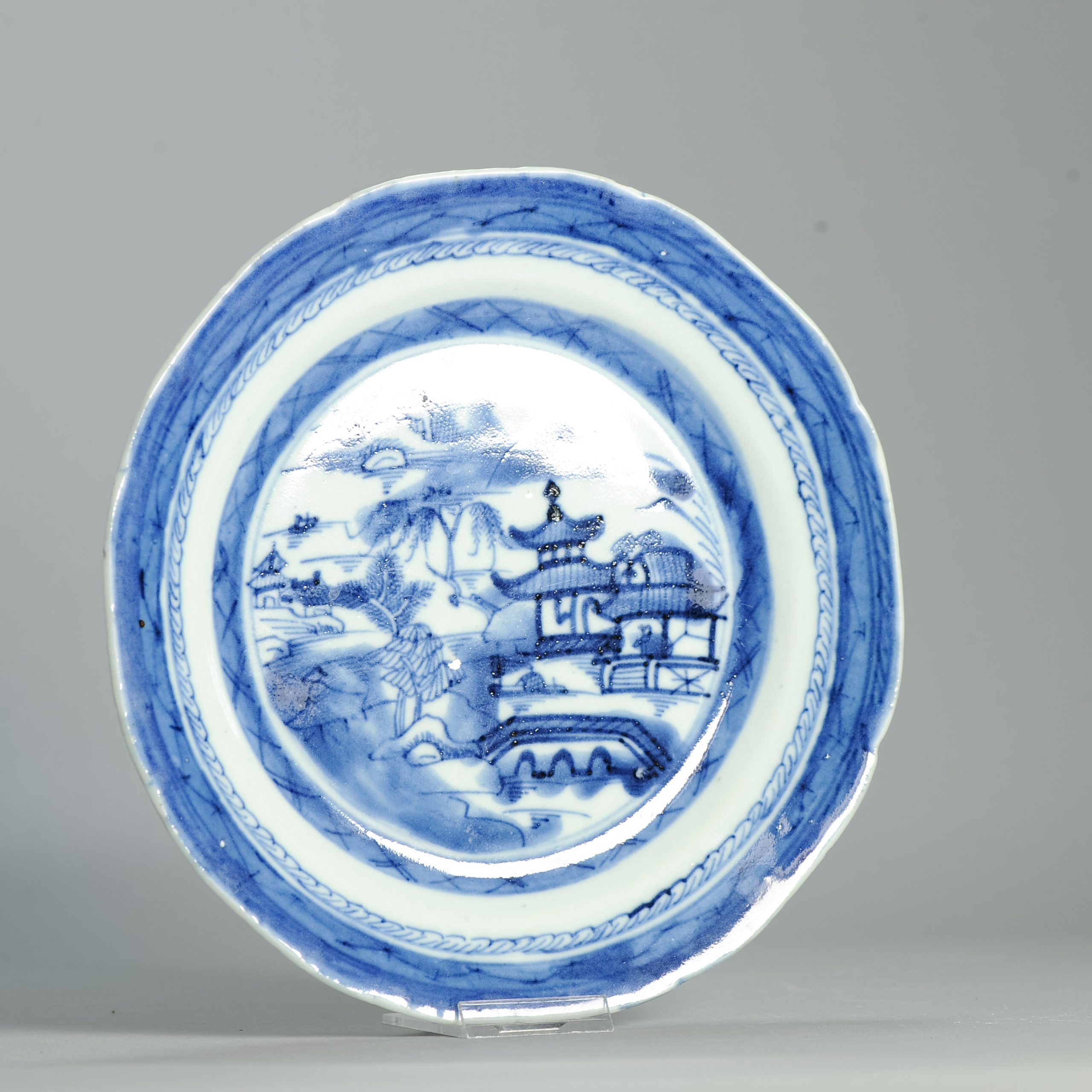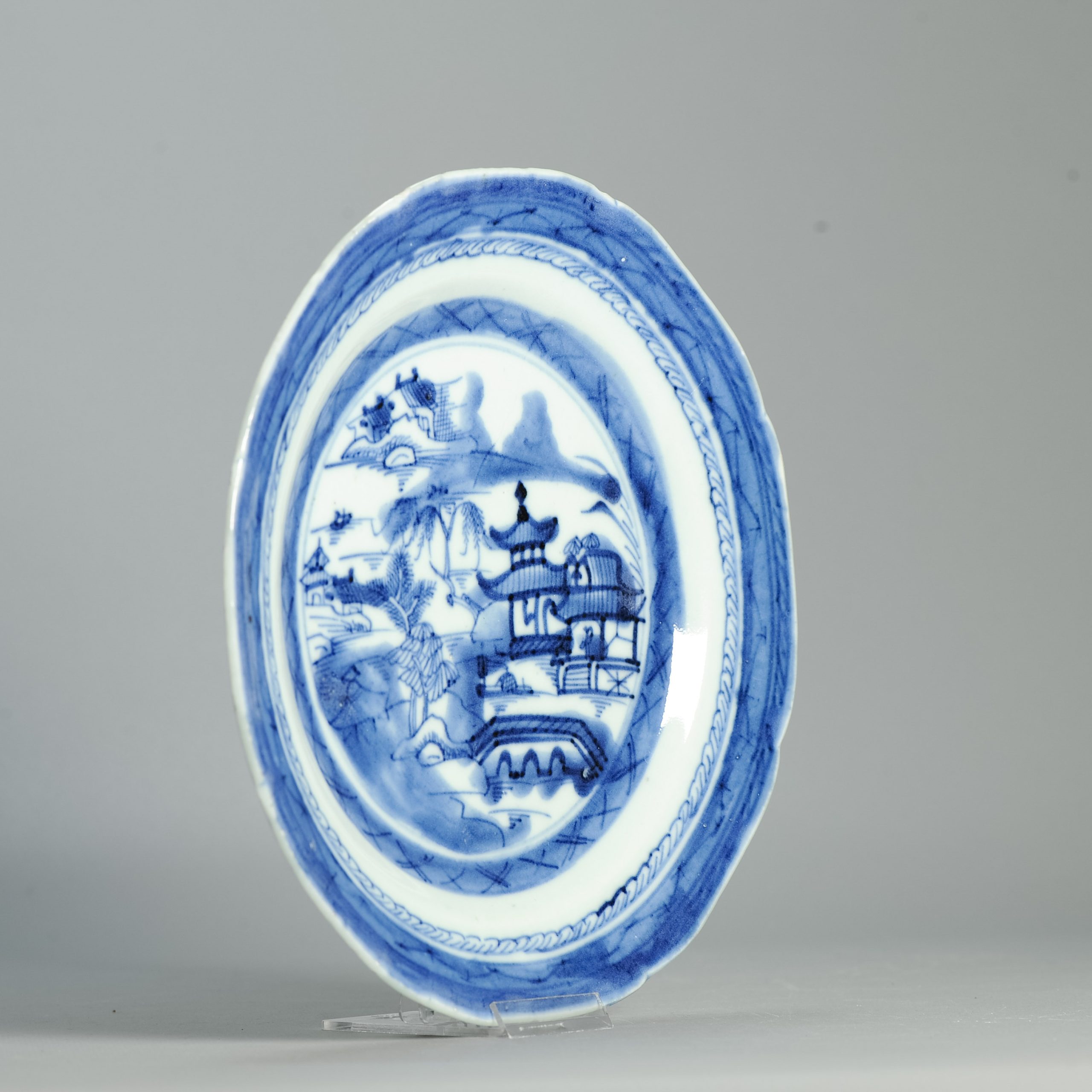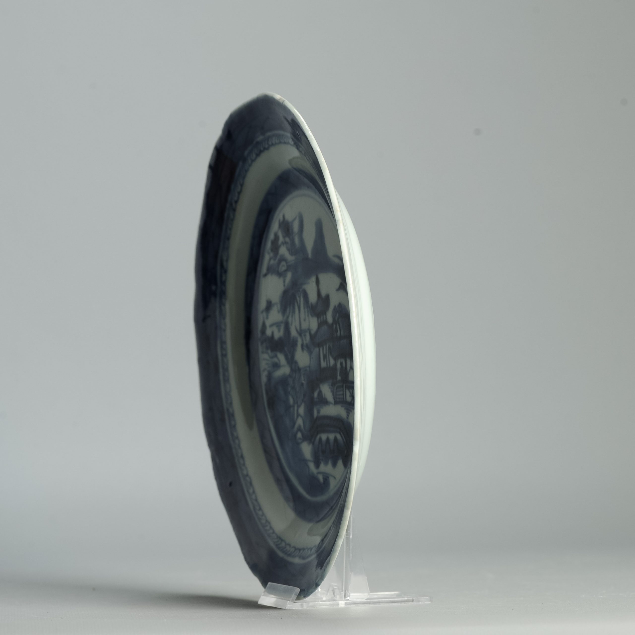 1565 Antique Chinese Blue and White 1800s Cantonese dish with ca 1800 English Regency / George the IV 19th c redecoration