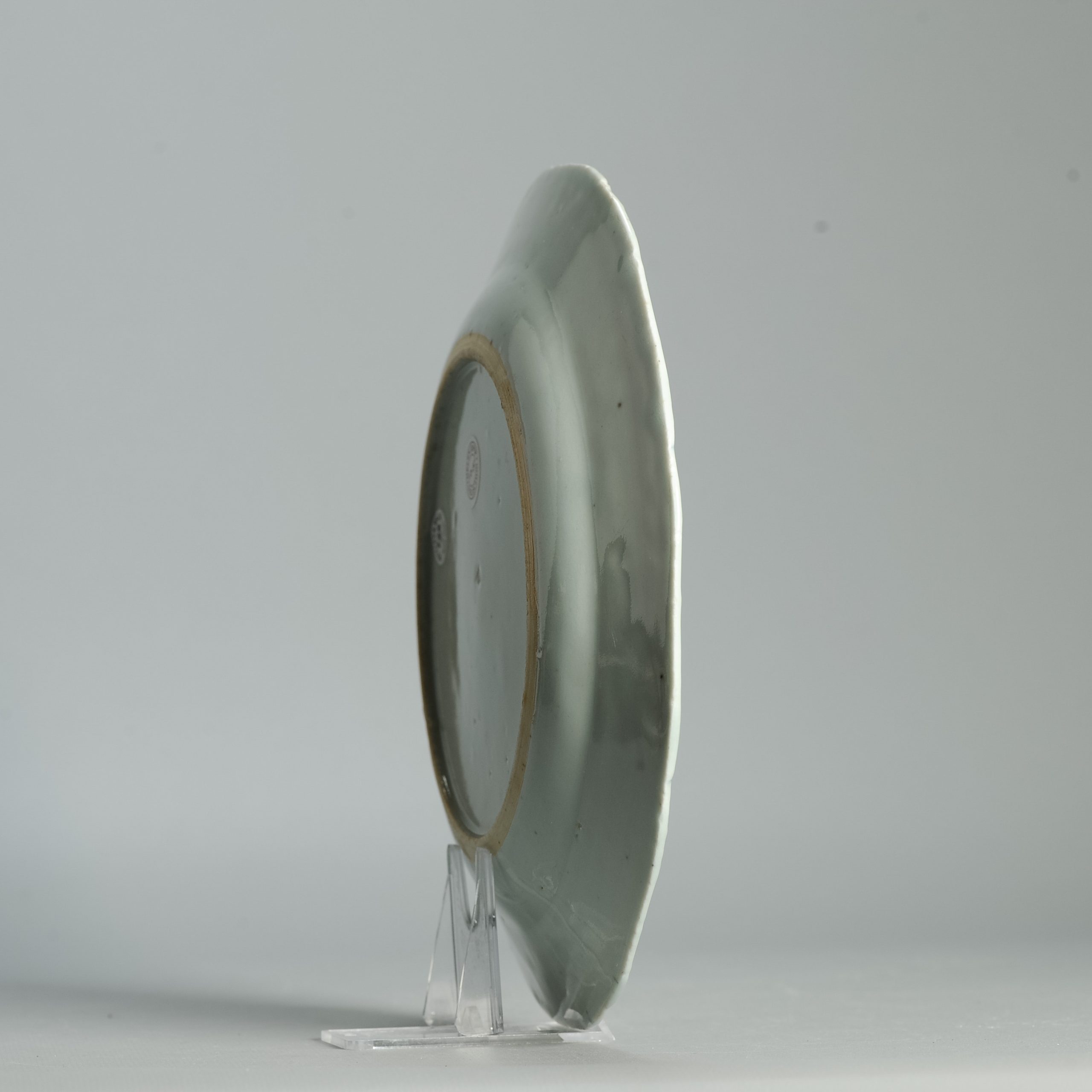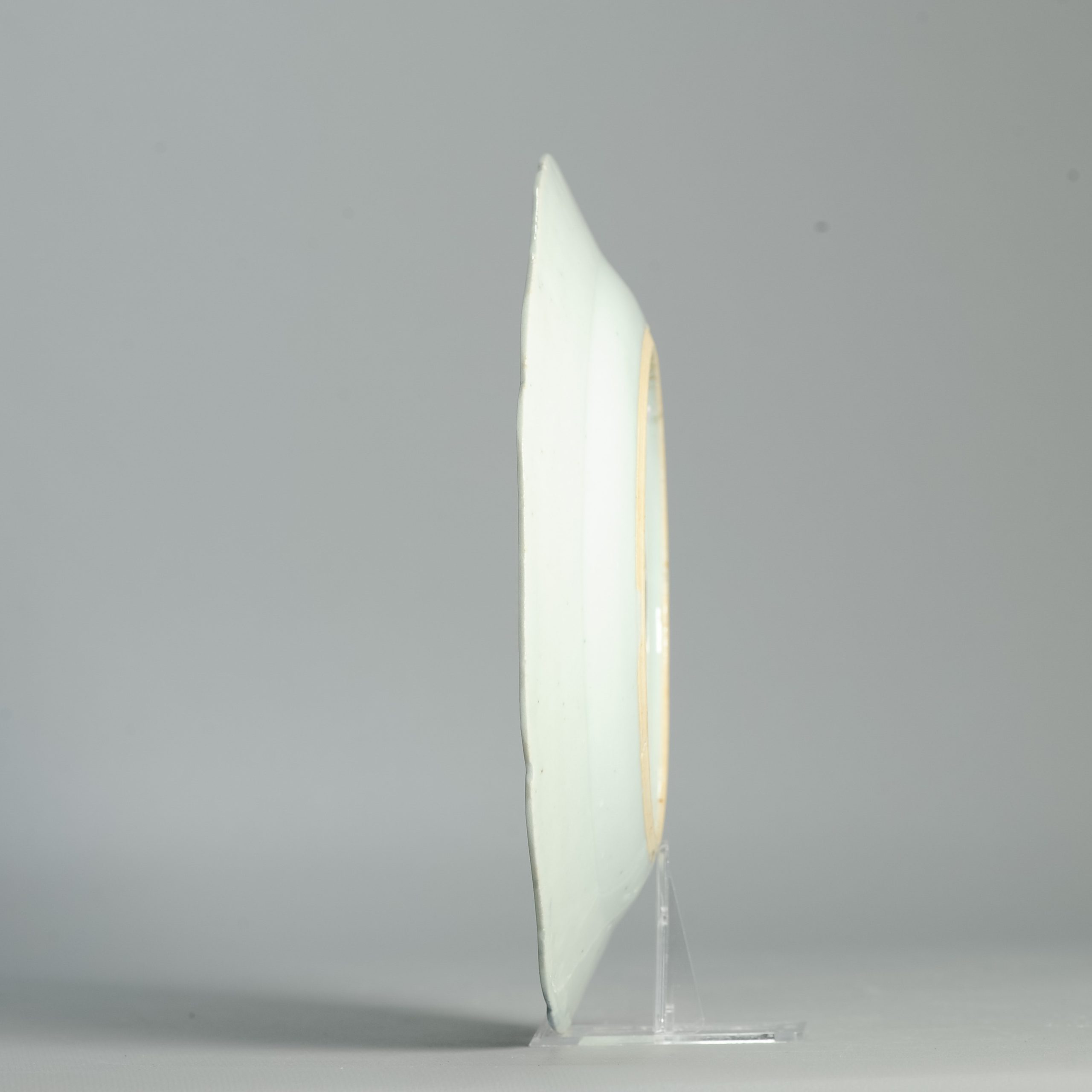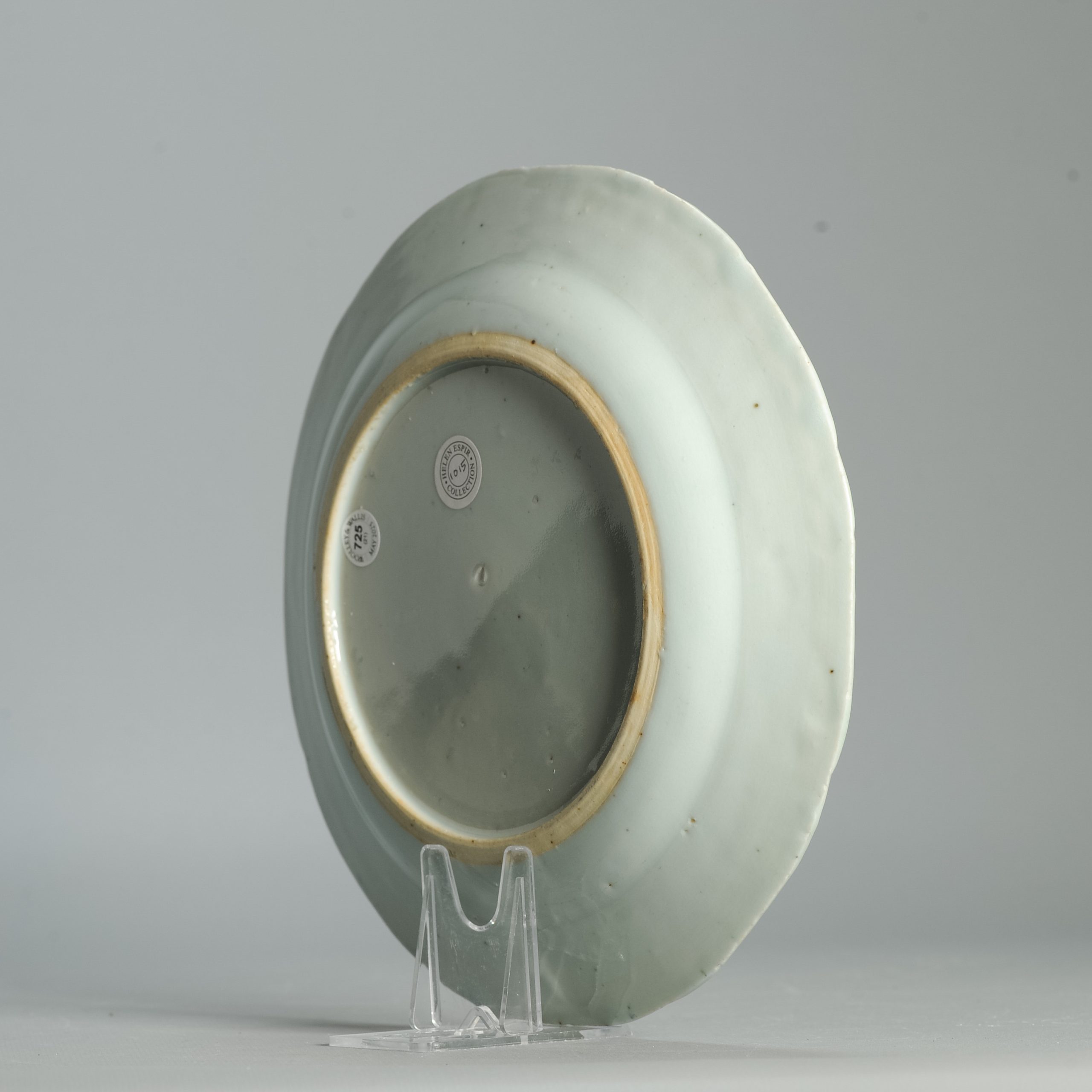 English Regency redecorated plate. This one is rather complicated. Its a very high quality Chinese Qianlong export dish (of the type sometimes called Imperial Quality on export ware)  dating to around 1750-1770 with a decoration that copies the famous French Chantilly Sprig pattern. A design that emerged in the 1730/40s on Chantilly Soft past porcelain and was later copied around Europe and also in China. This plate was than later redecorated in the Regency style around 1800-1820 to fit the new fashion of the regency period.