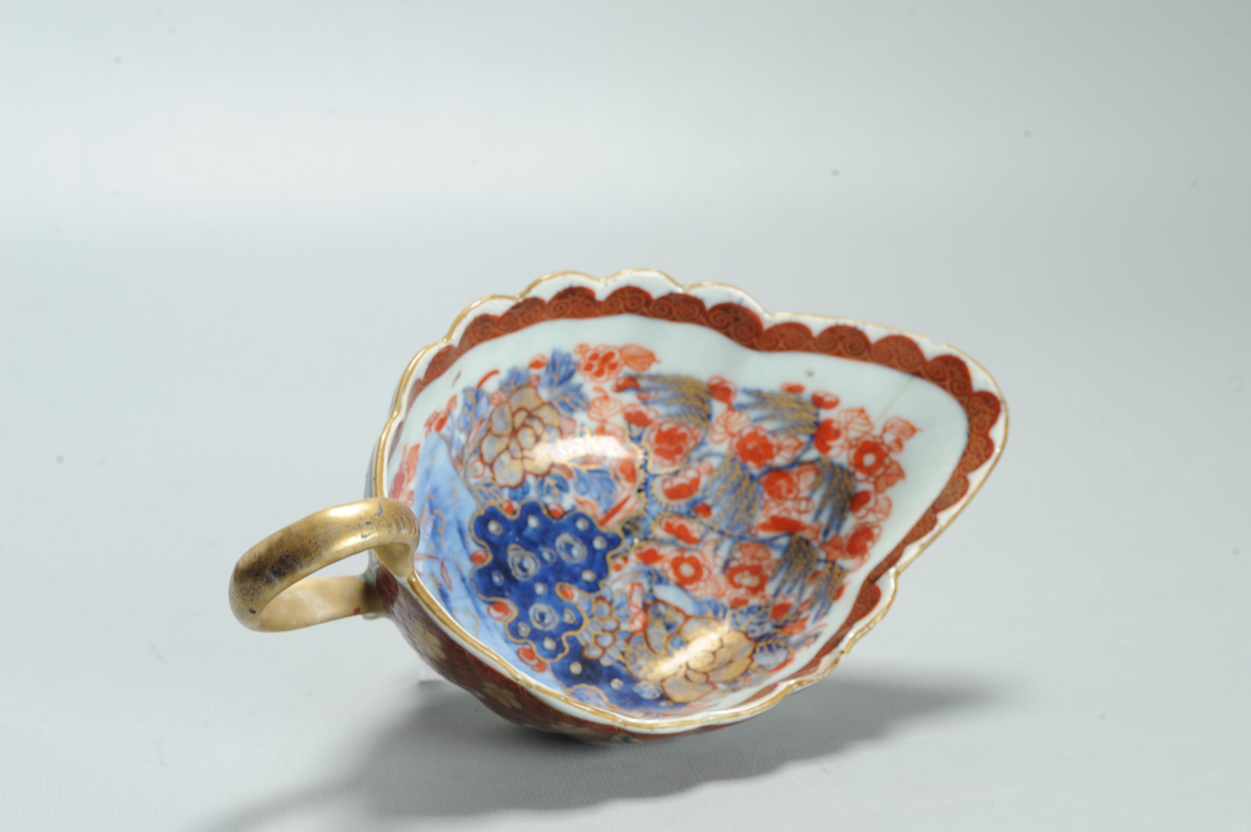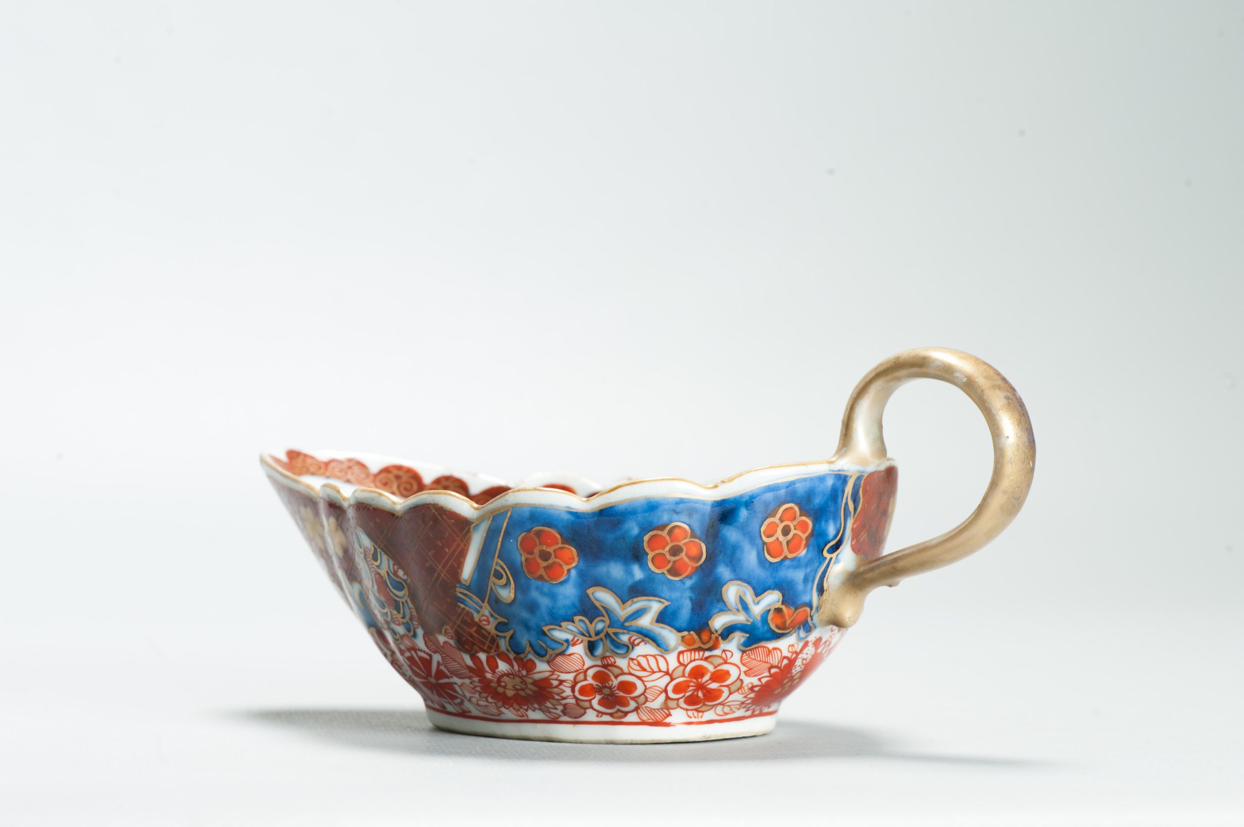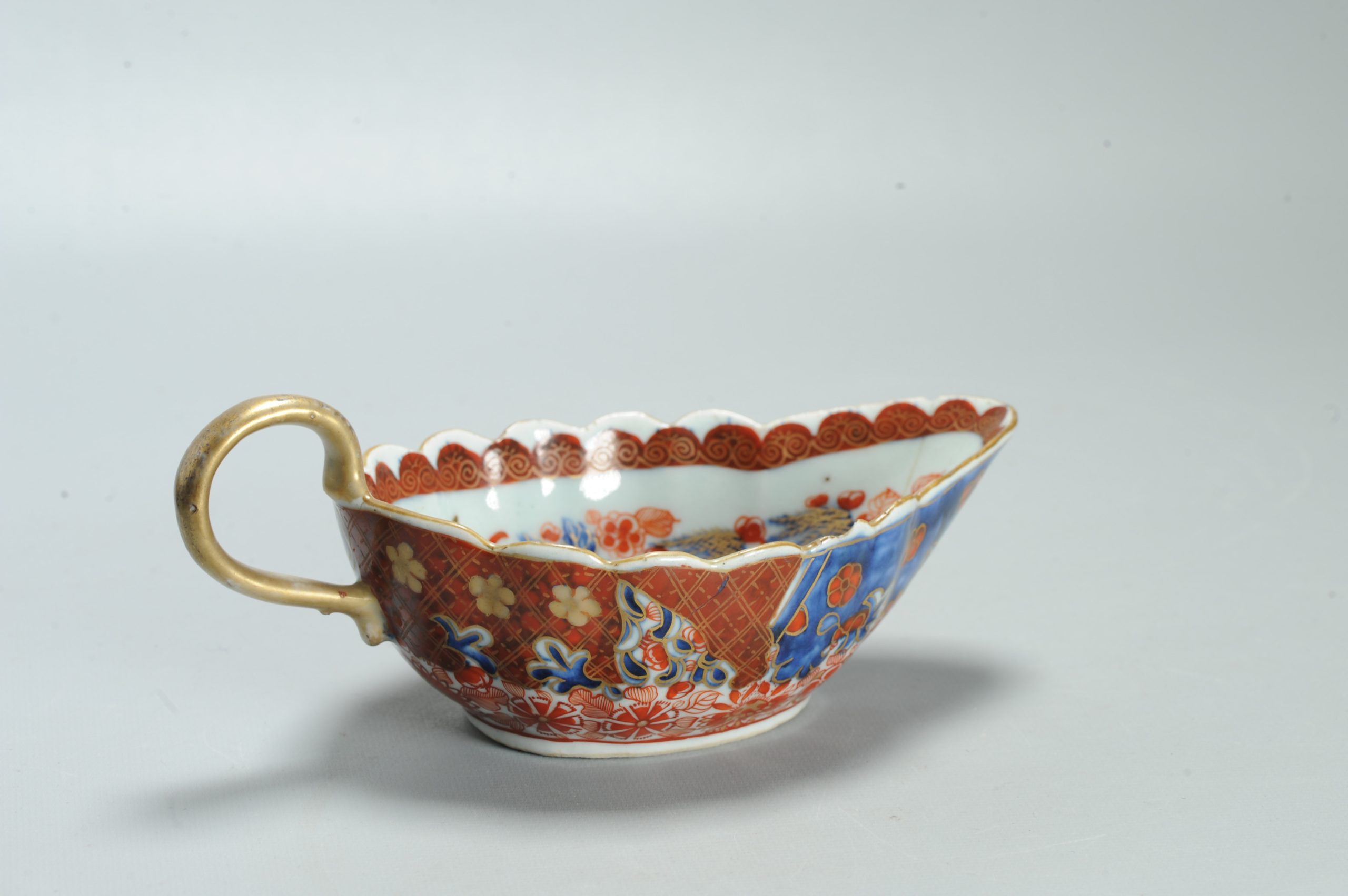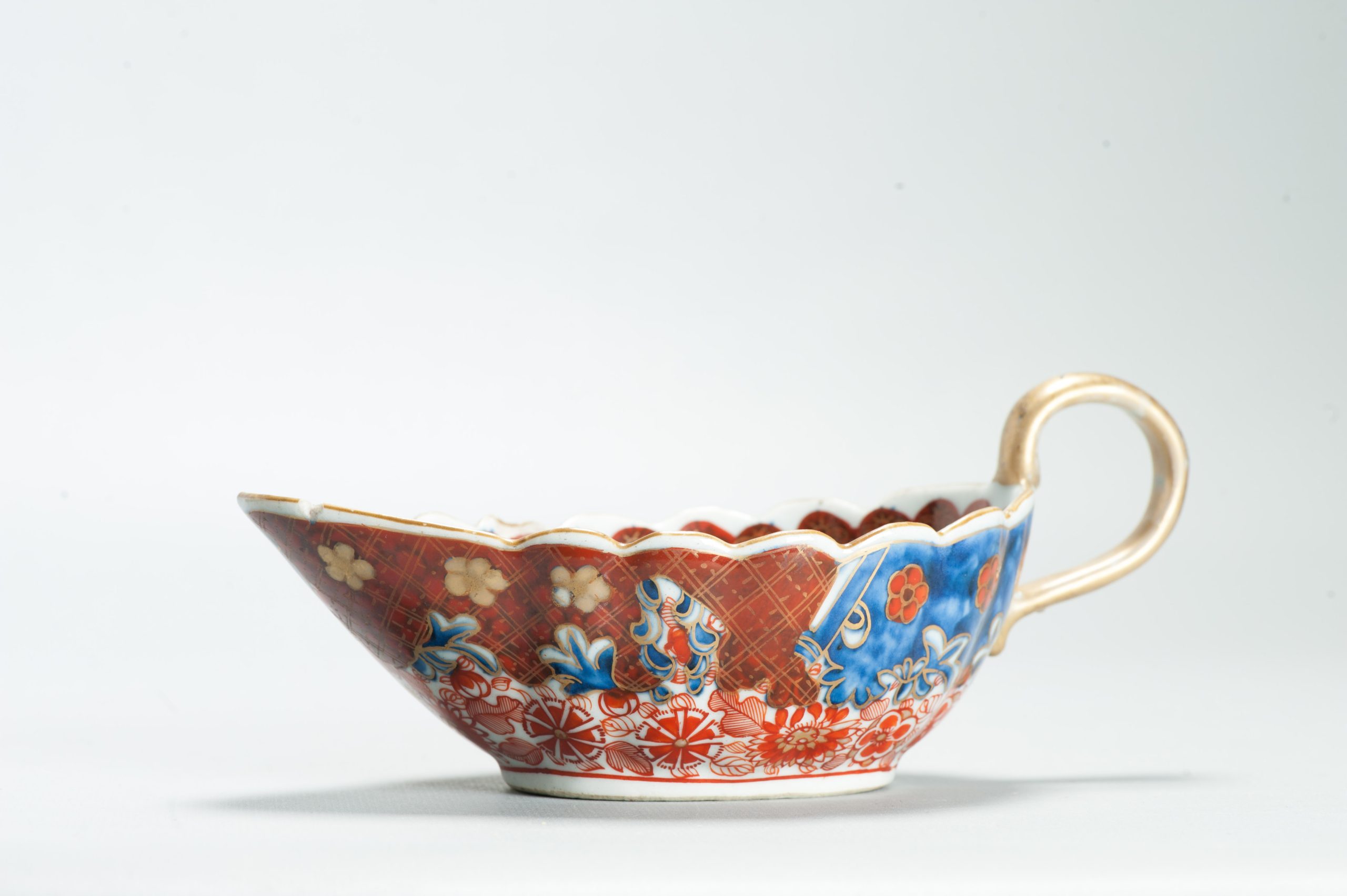 1599 Antique Blue and White 1750s Sauceboat with ca 1800 English Regency / George the IV 19th c redecoration