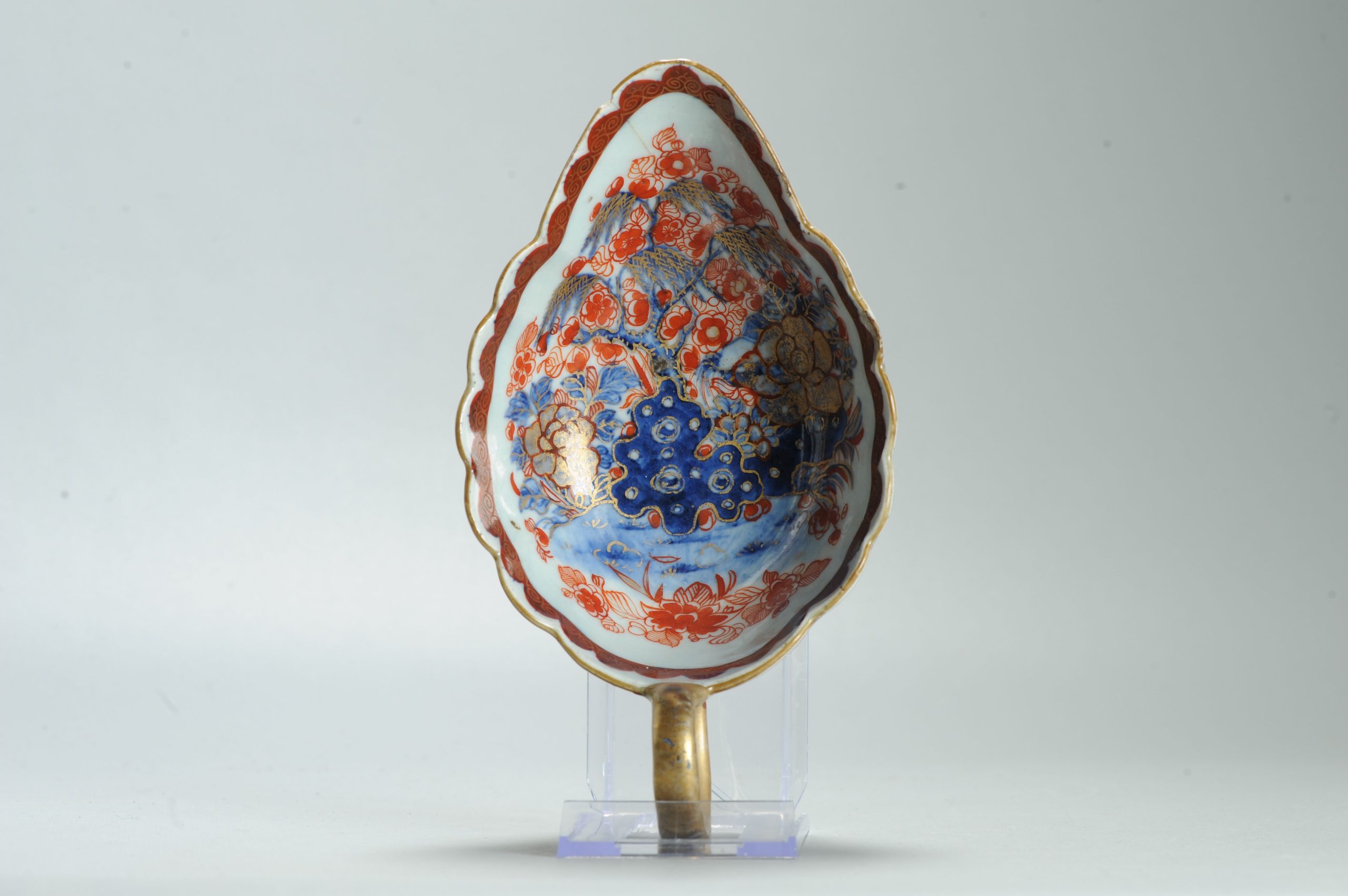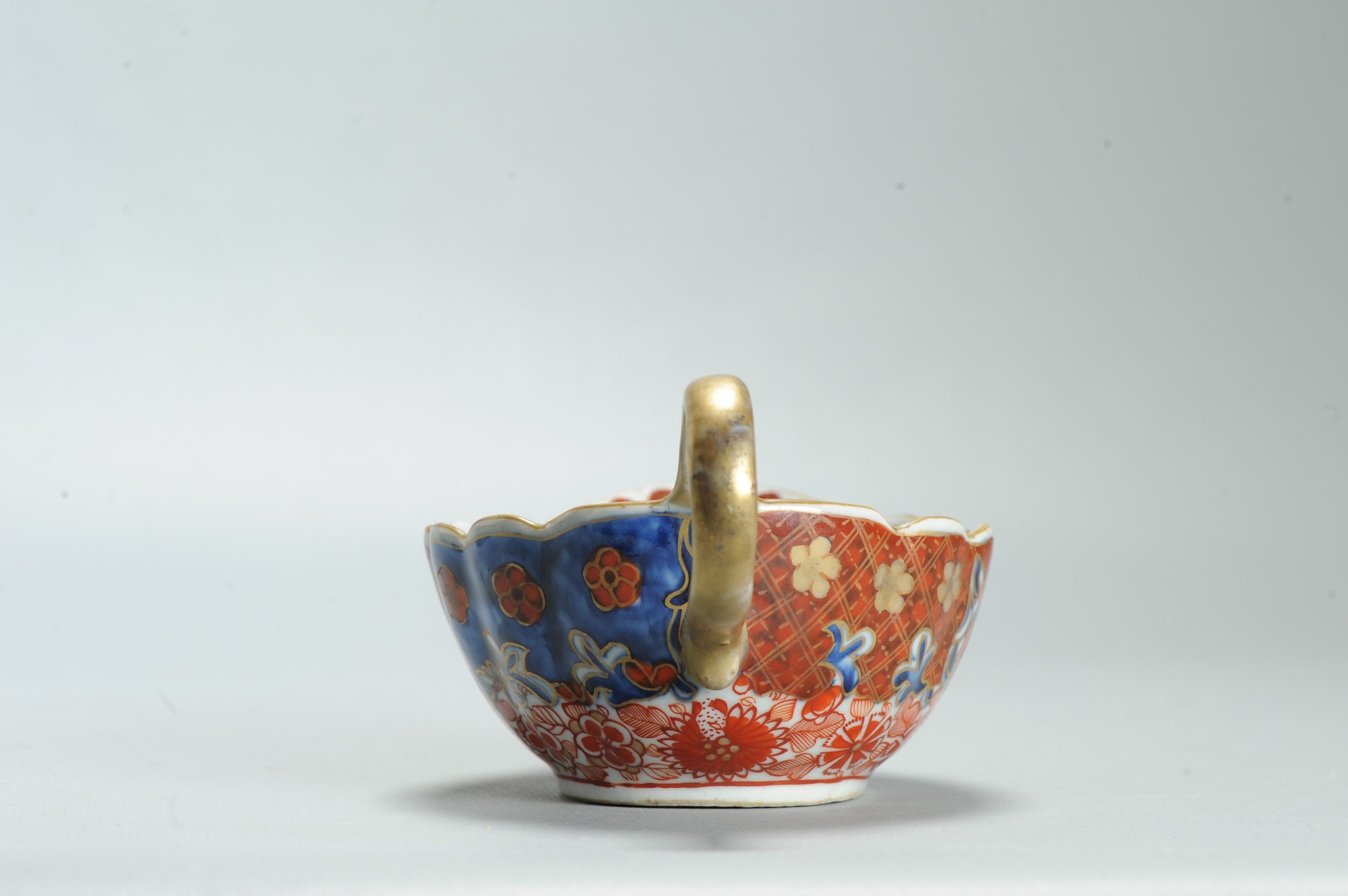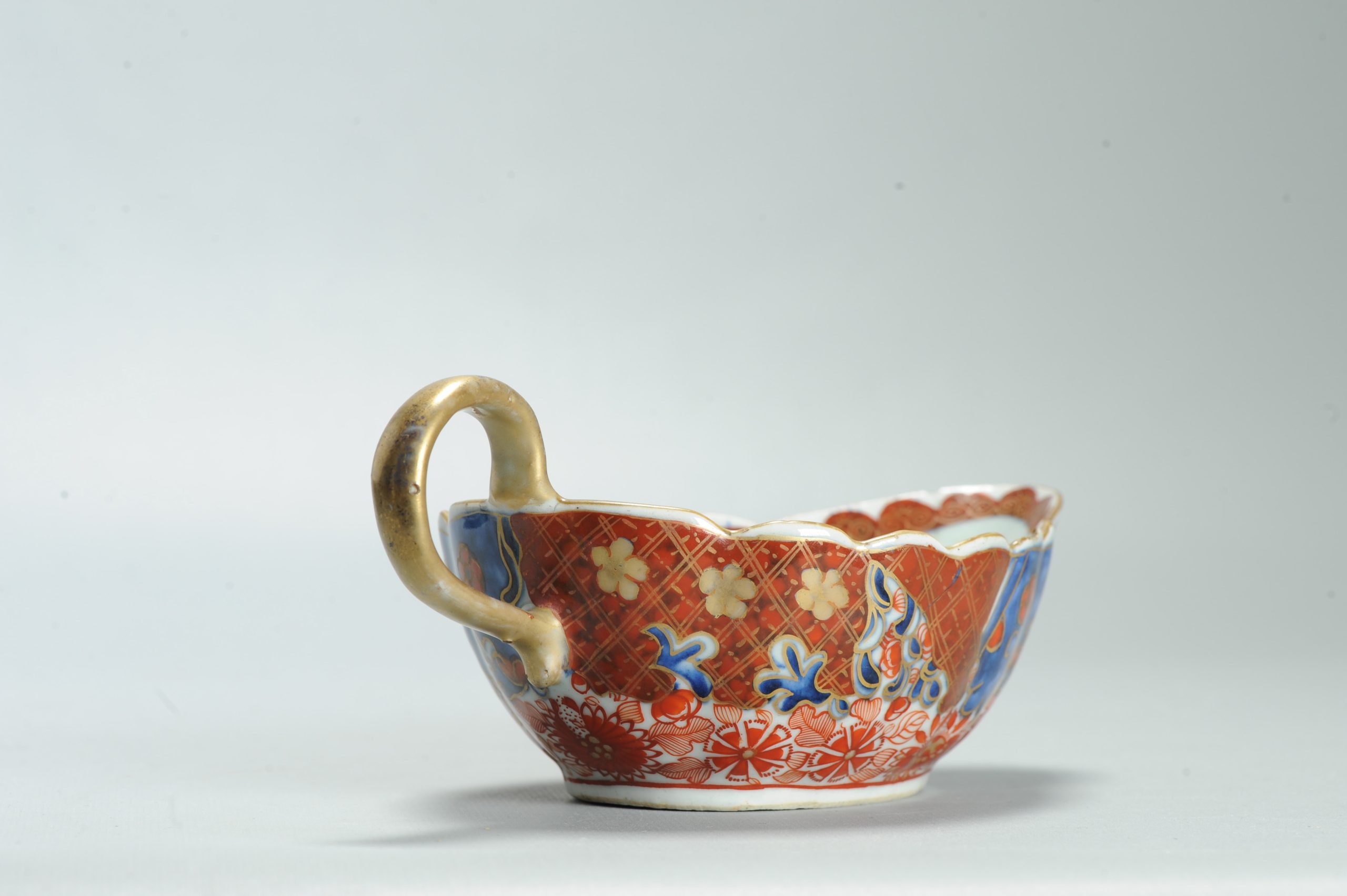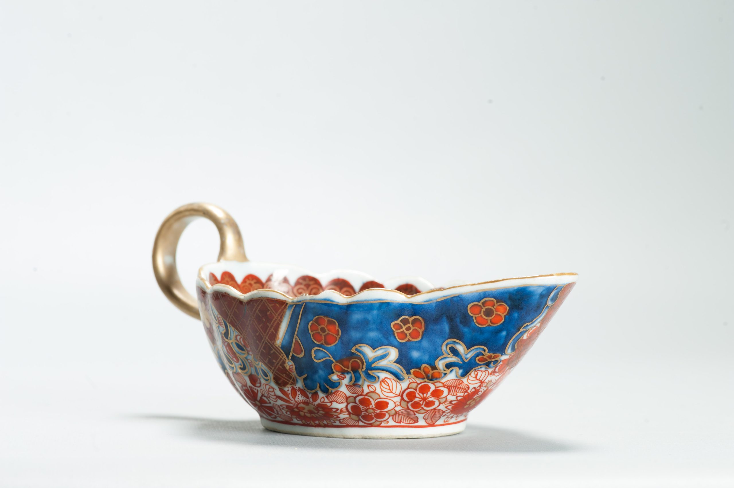 1599 Antique Blue and White 1750s Sauceboat with ca 1800 English Regency / George the IV 19th c redecoration