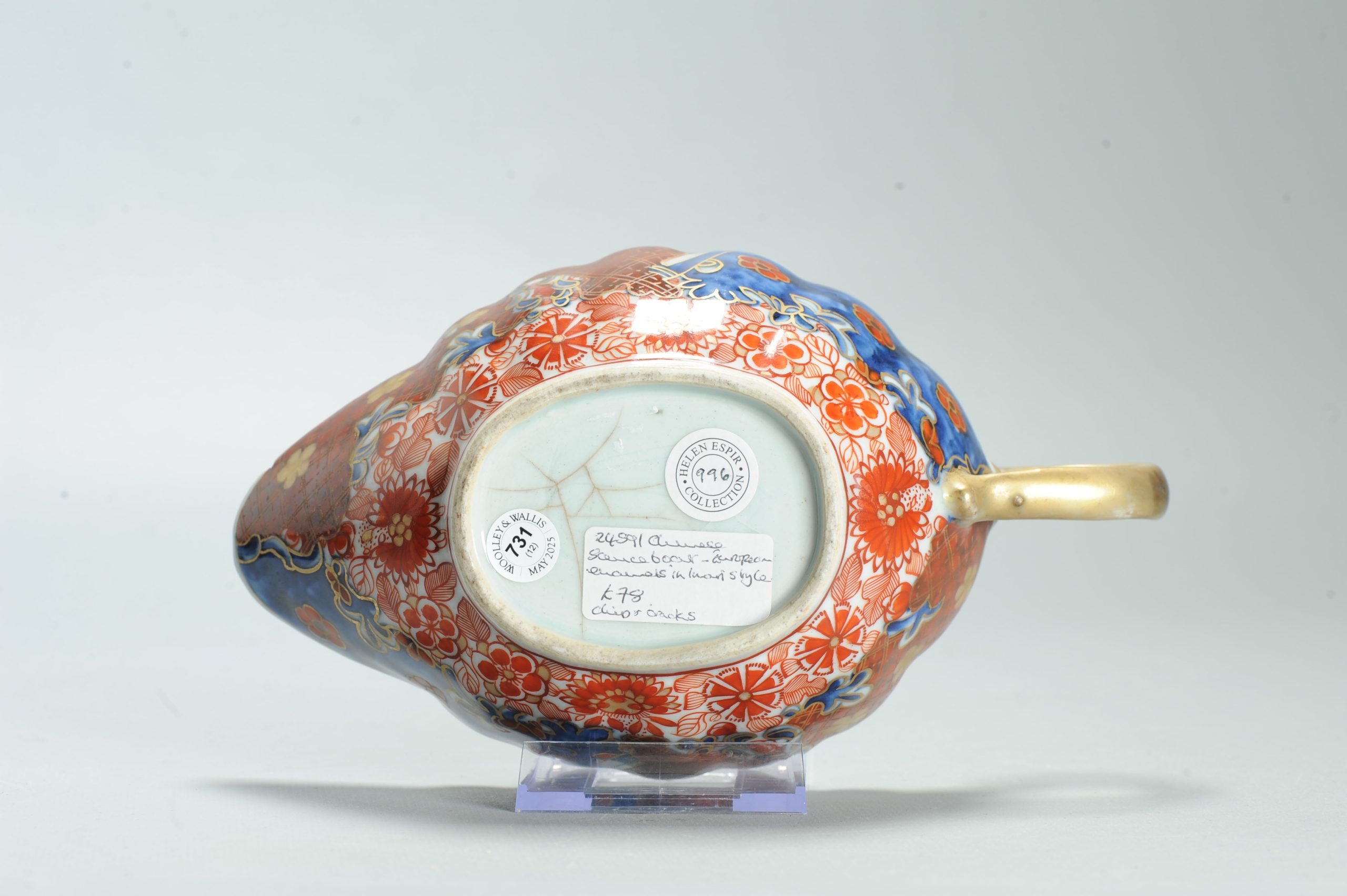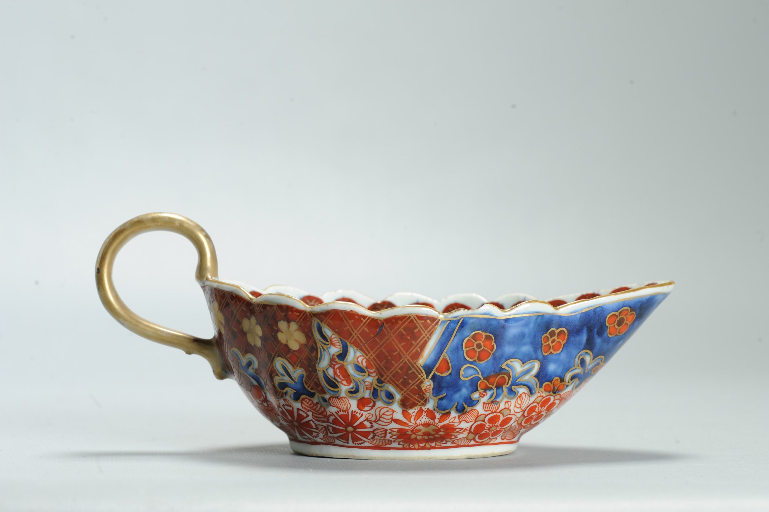 1599 Antique Blue and White 1750s Sauceboat with ca 1800 English Regency / George the IV 19th c redecorationPeriod:1750 & Redecoration 1800-1830