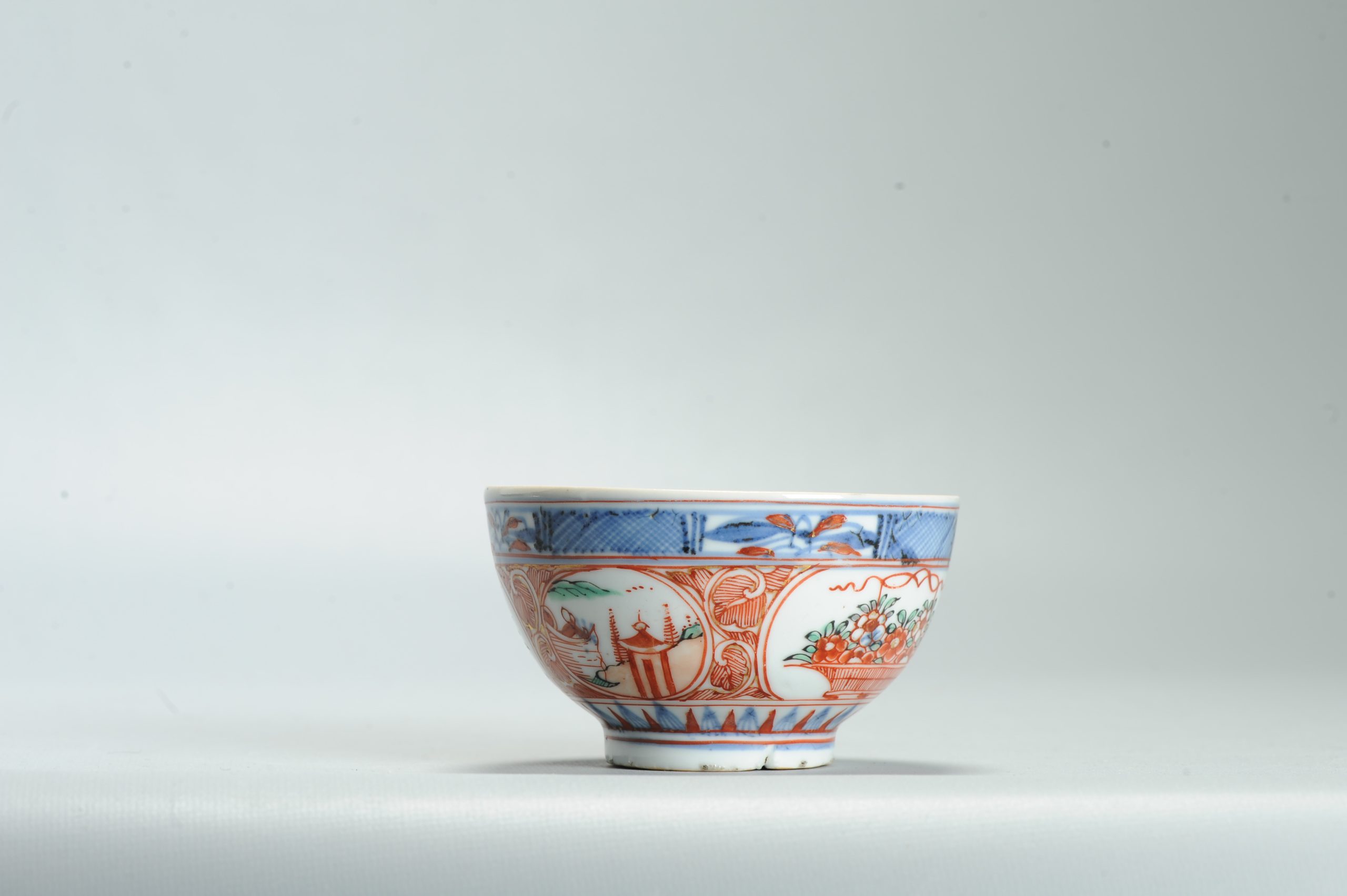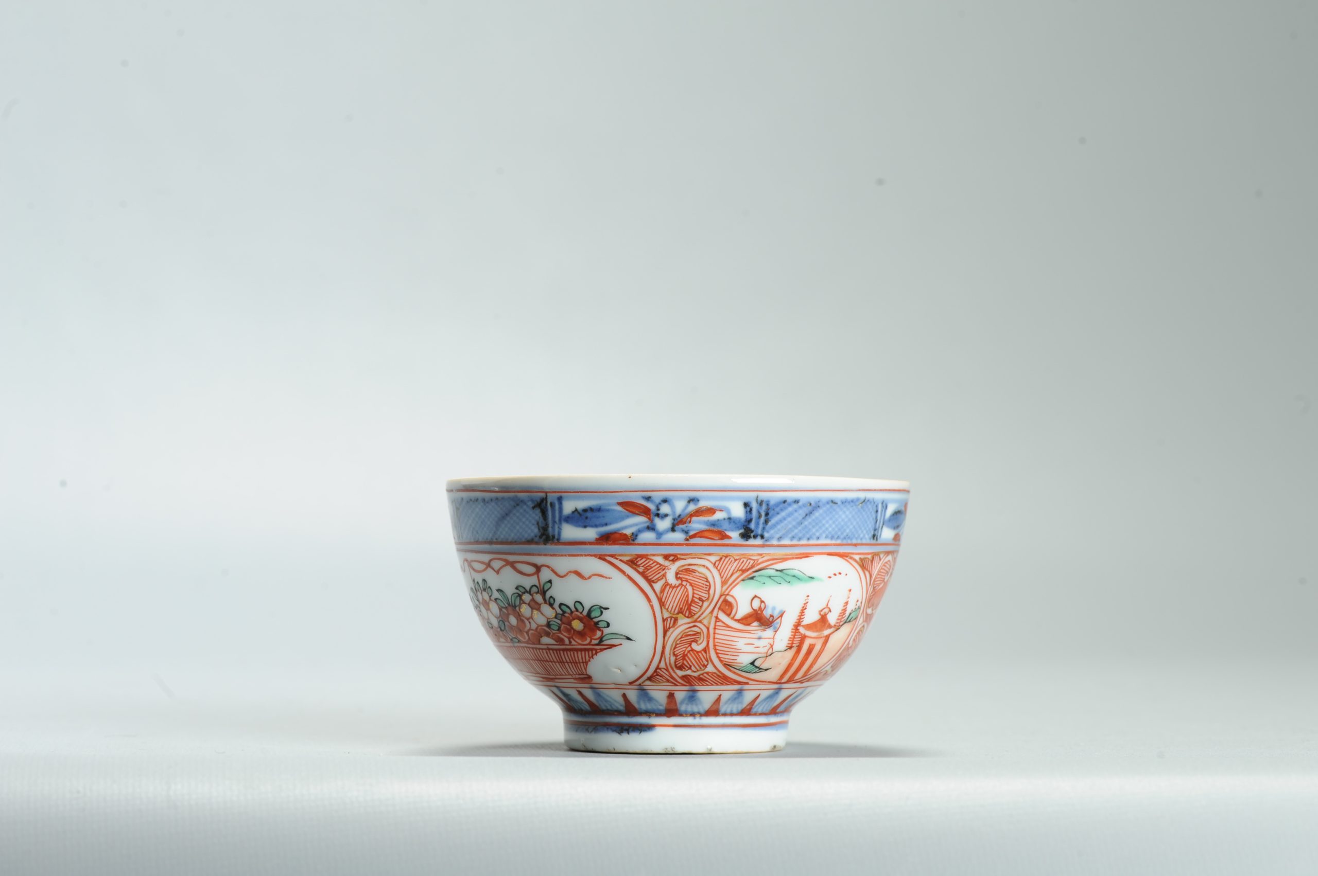 1636 Antique Chinese Porcelain Blue and white Dehua? Bowl with Redecoration