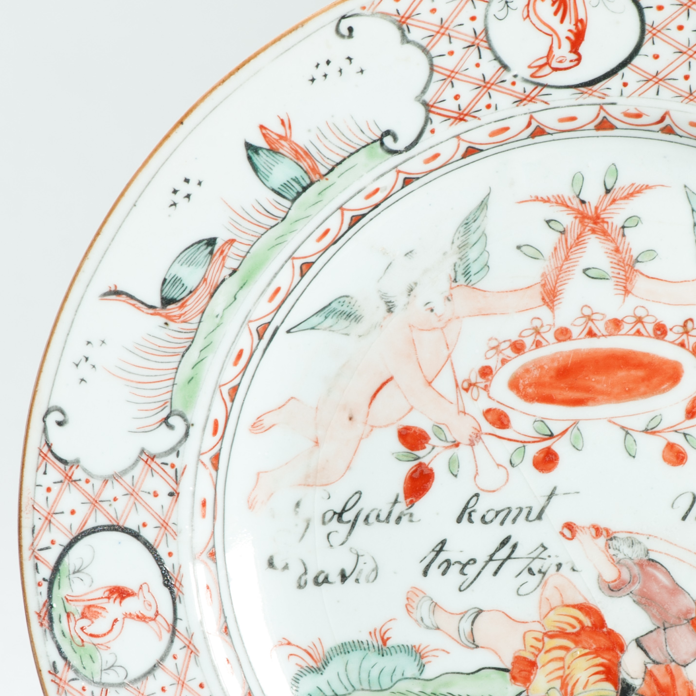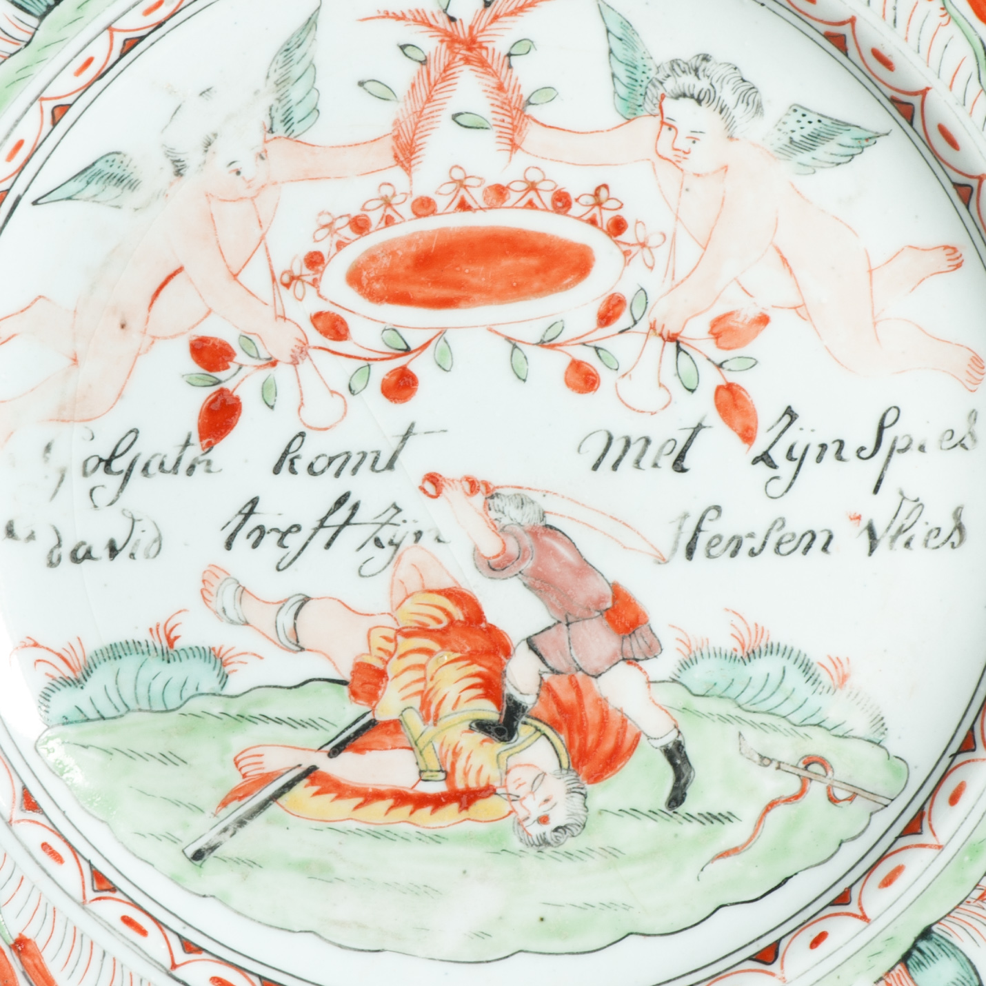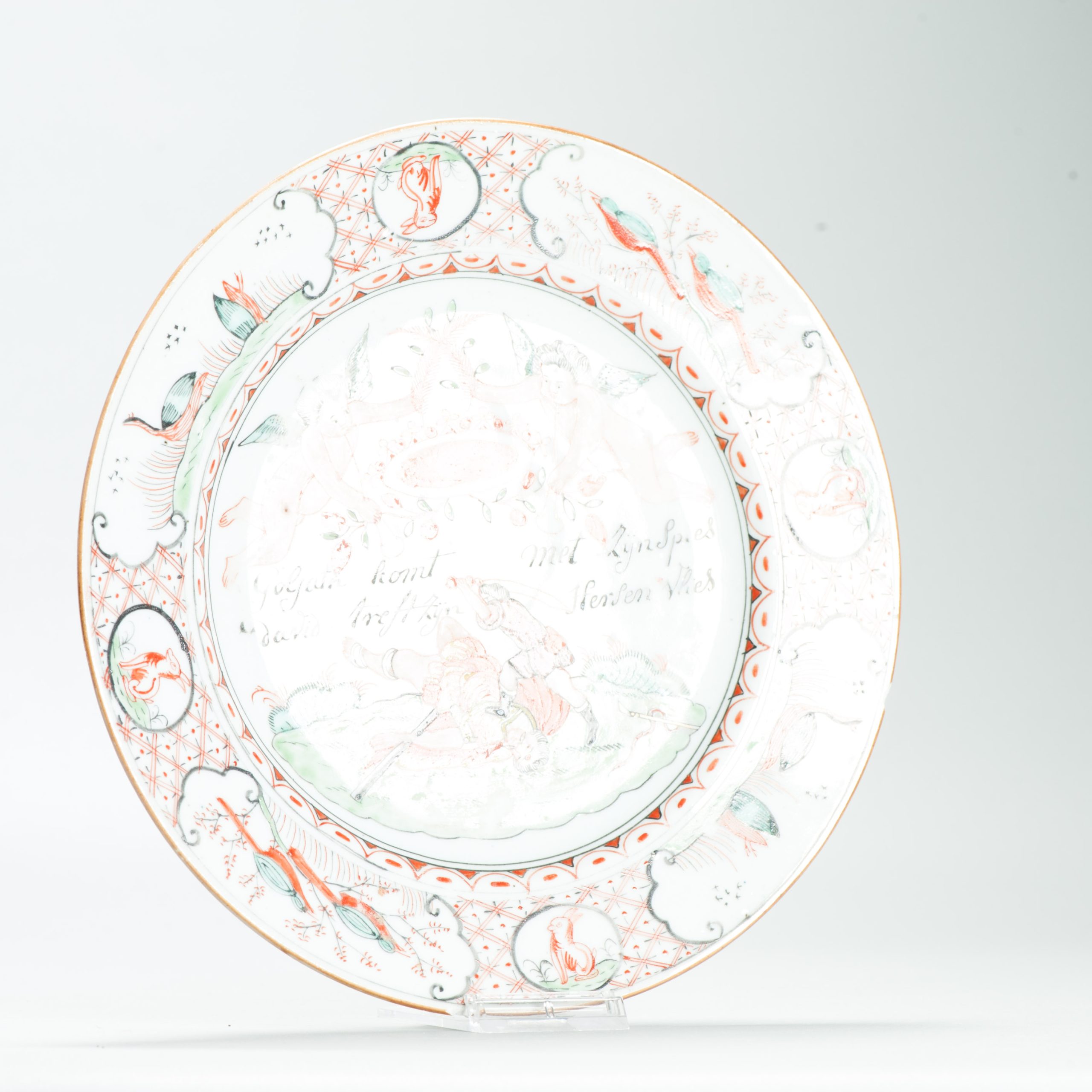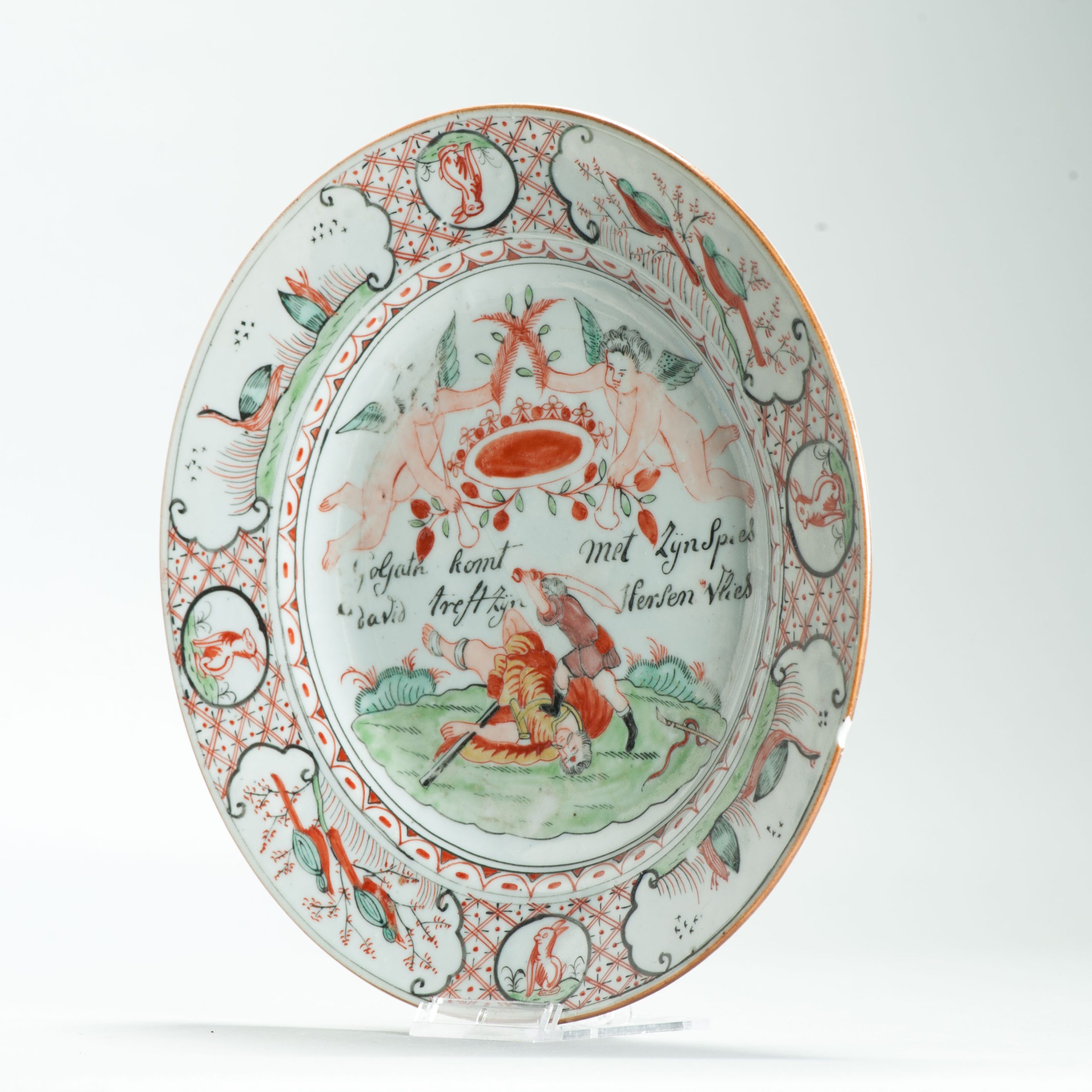 1641 Chinese porcelain plate overdecorated in the Netherlands with David & Goliath
