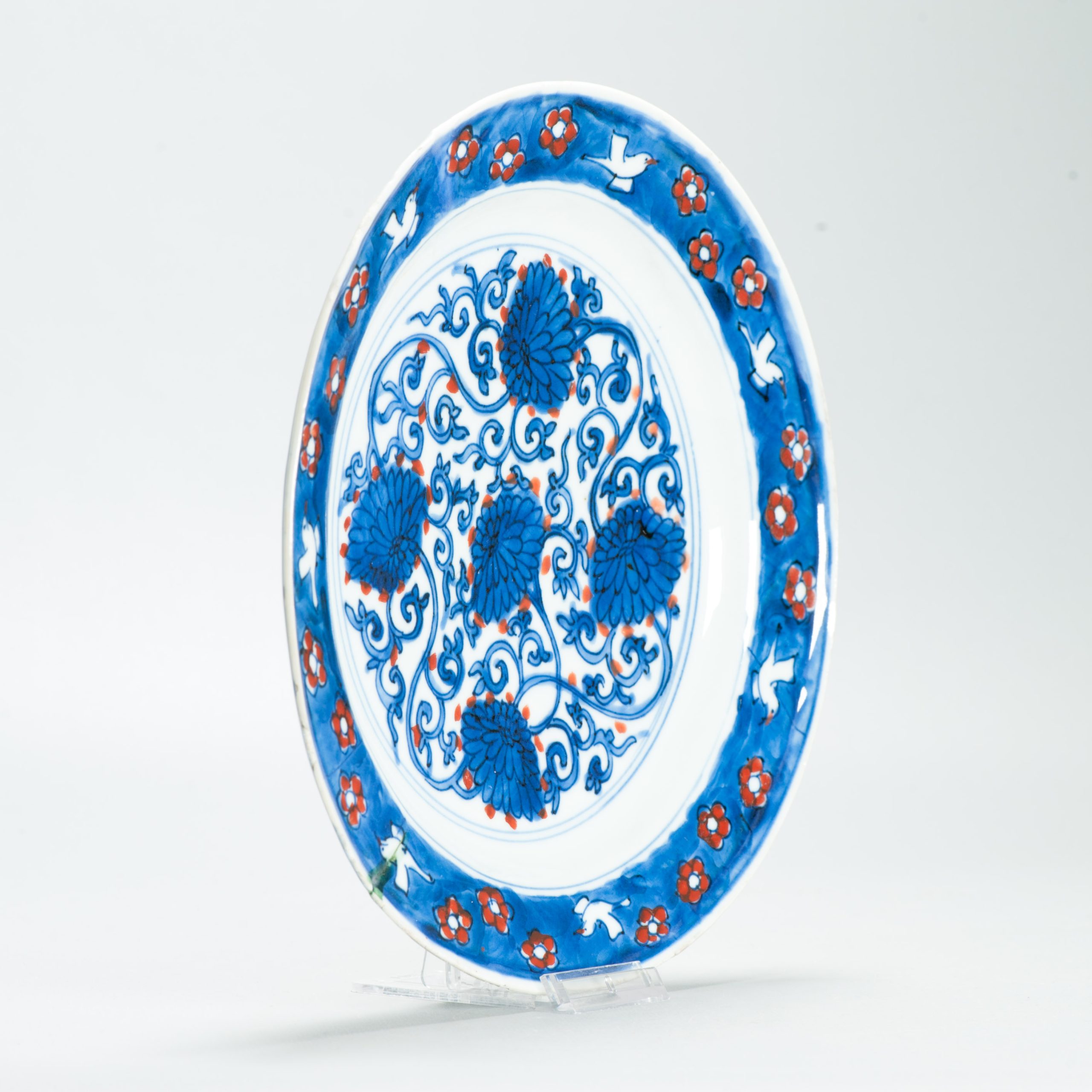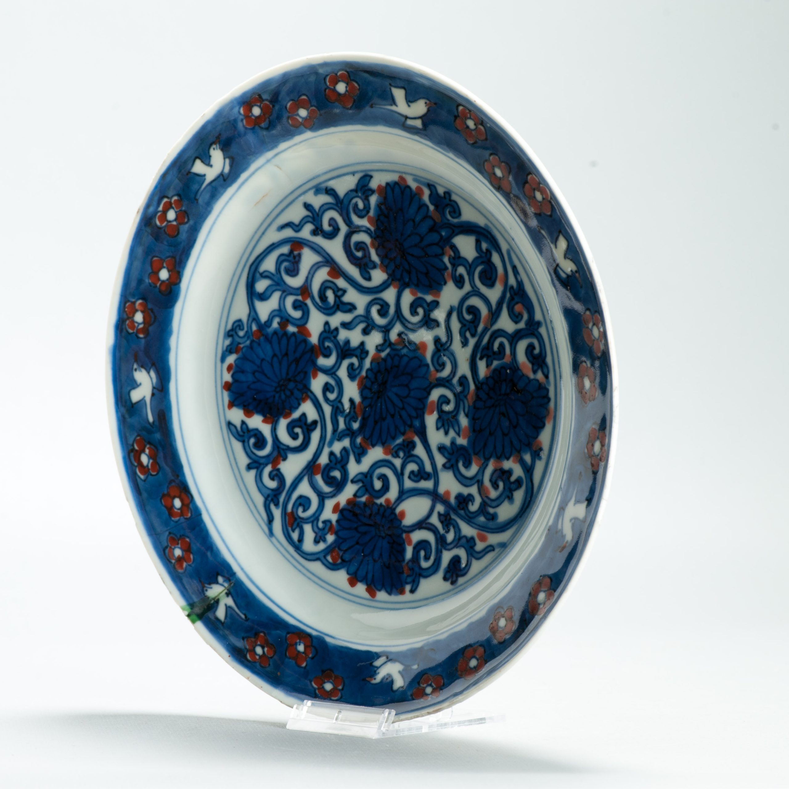 1647 Antique 1500s Blue and White Wucai Decorated Bowl With GreenPeriod:1600s c
