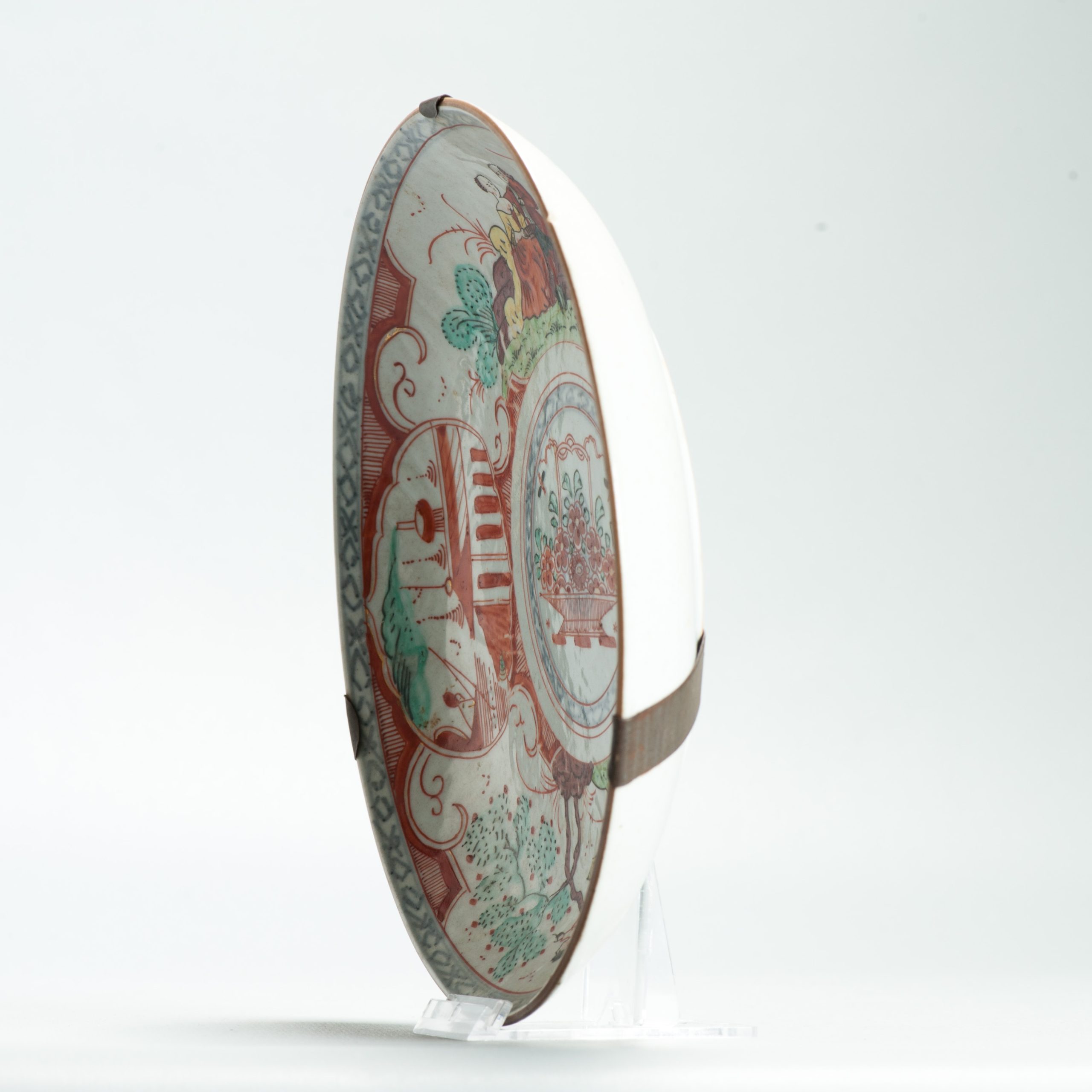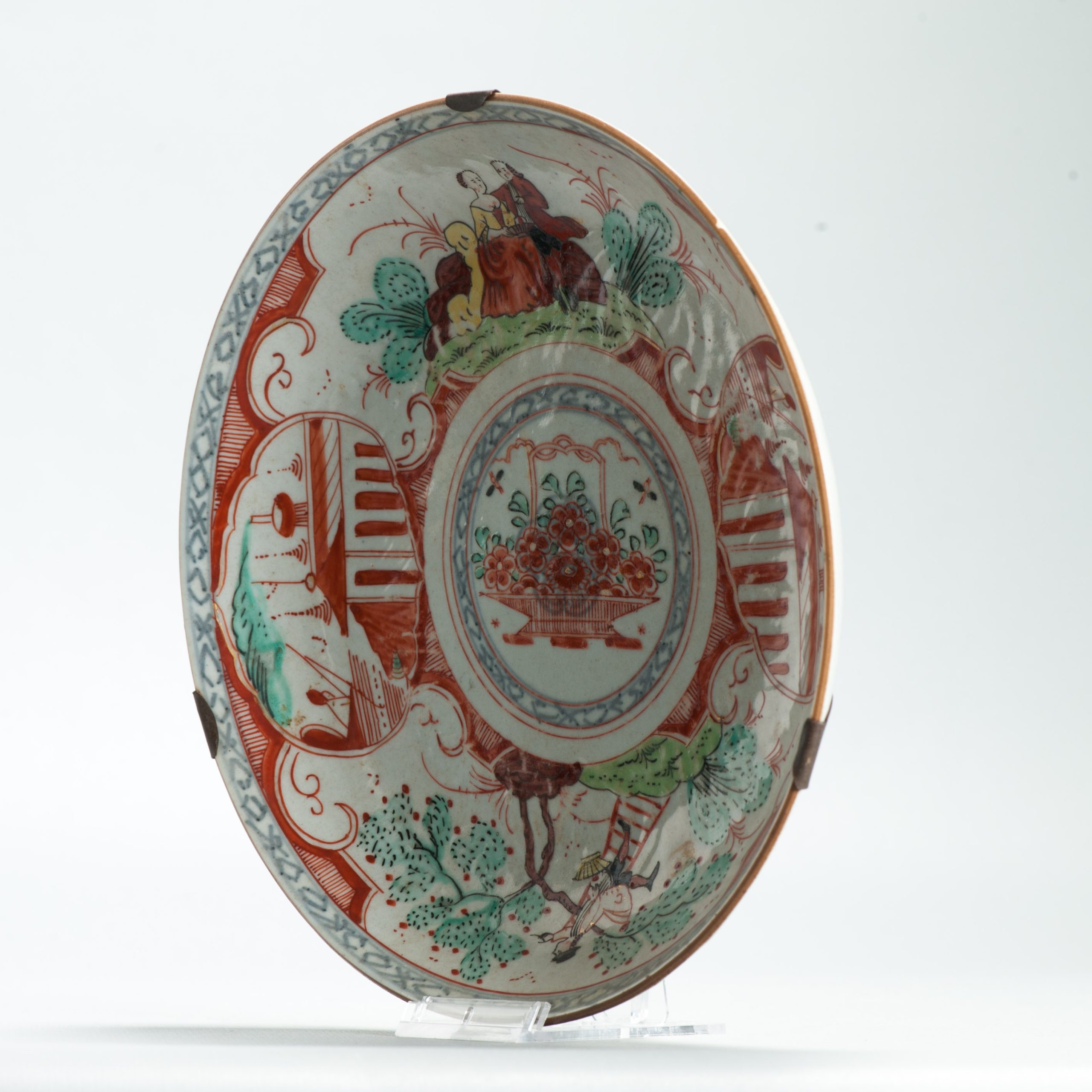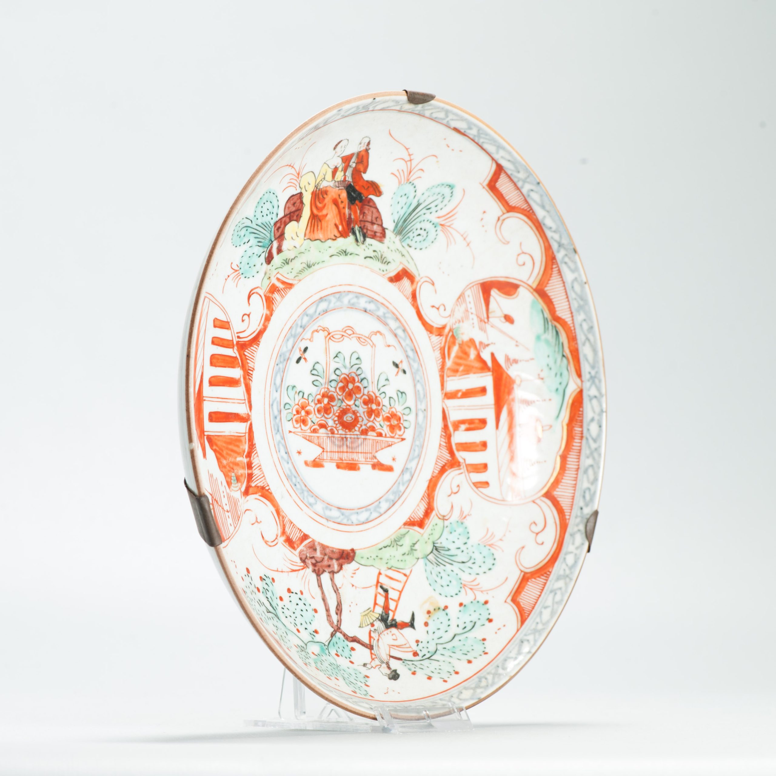 1650 A Chinese Porcelain Amsterdam Bont Plate with Couple Anne van Hannover & Willem IV & Cherry Picker