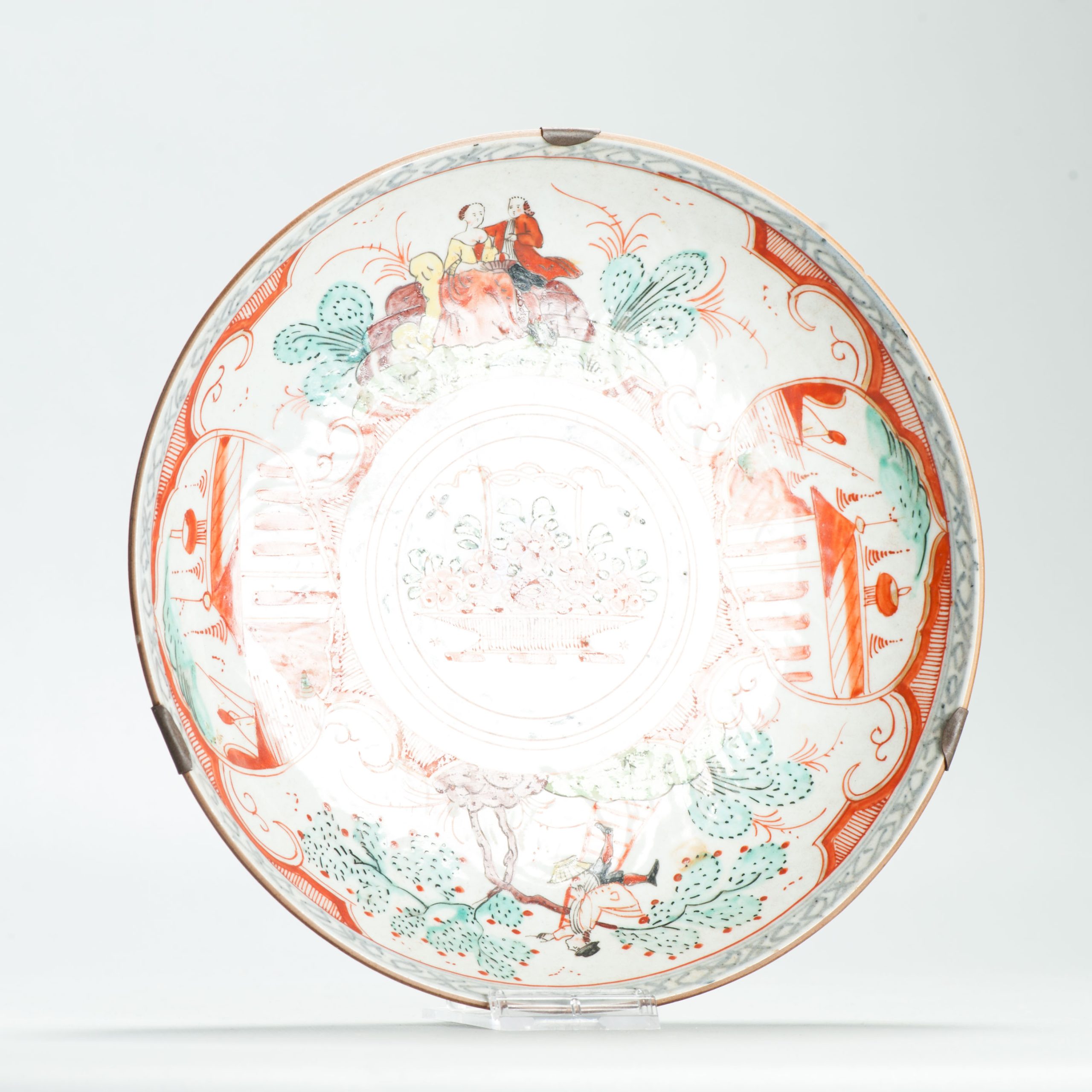 A very rare Amsterdam Bont Bowl with tea drinking pair. Most likely Anne and Willem IV