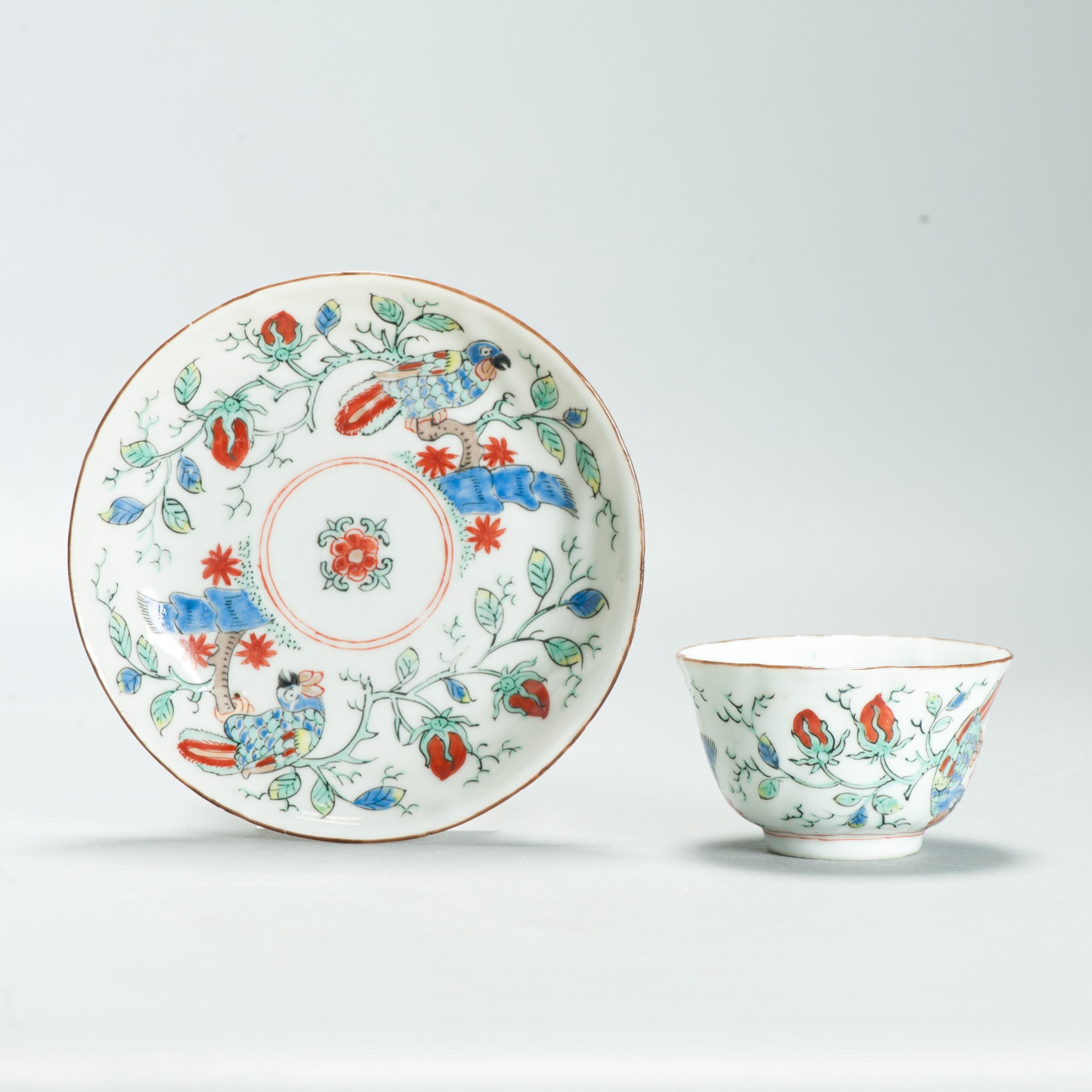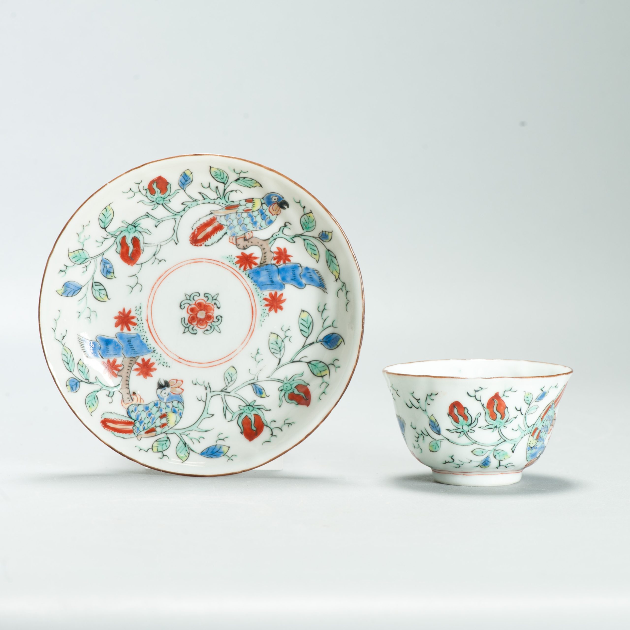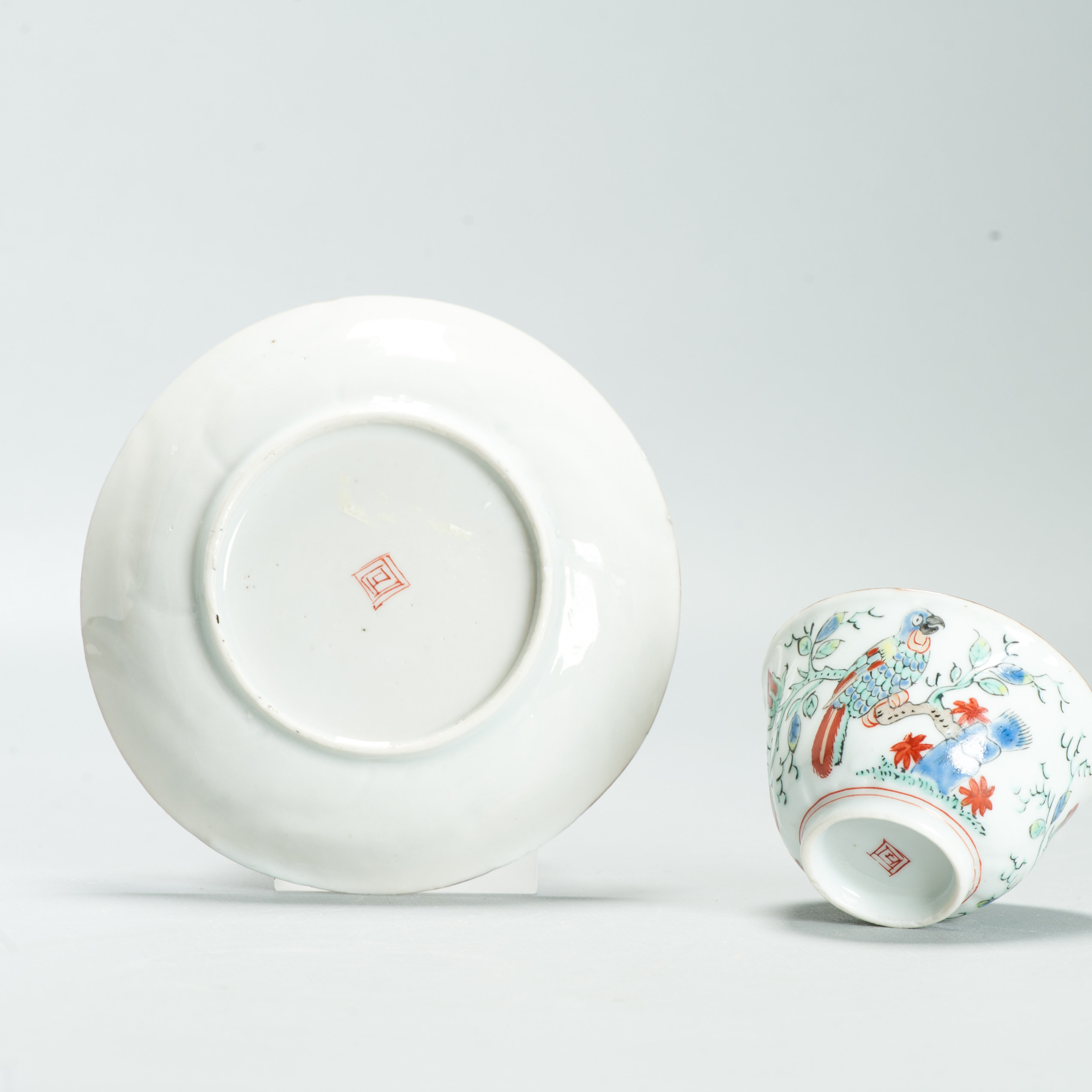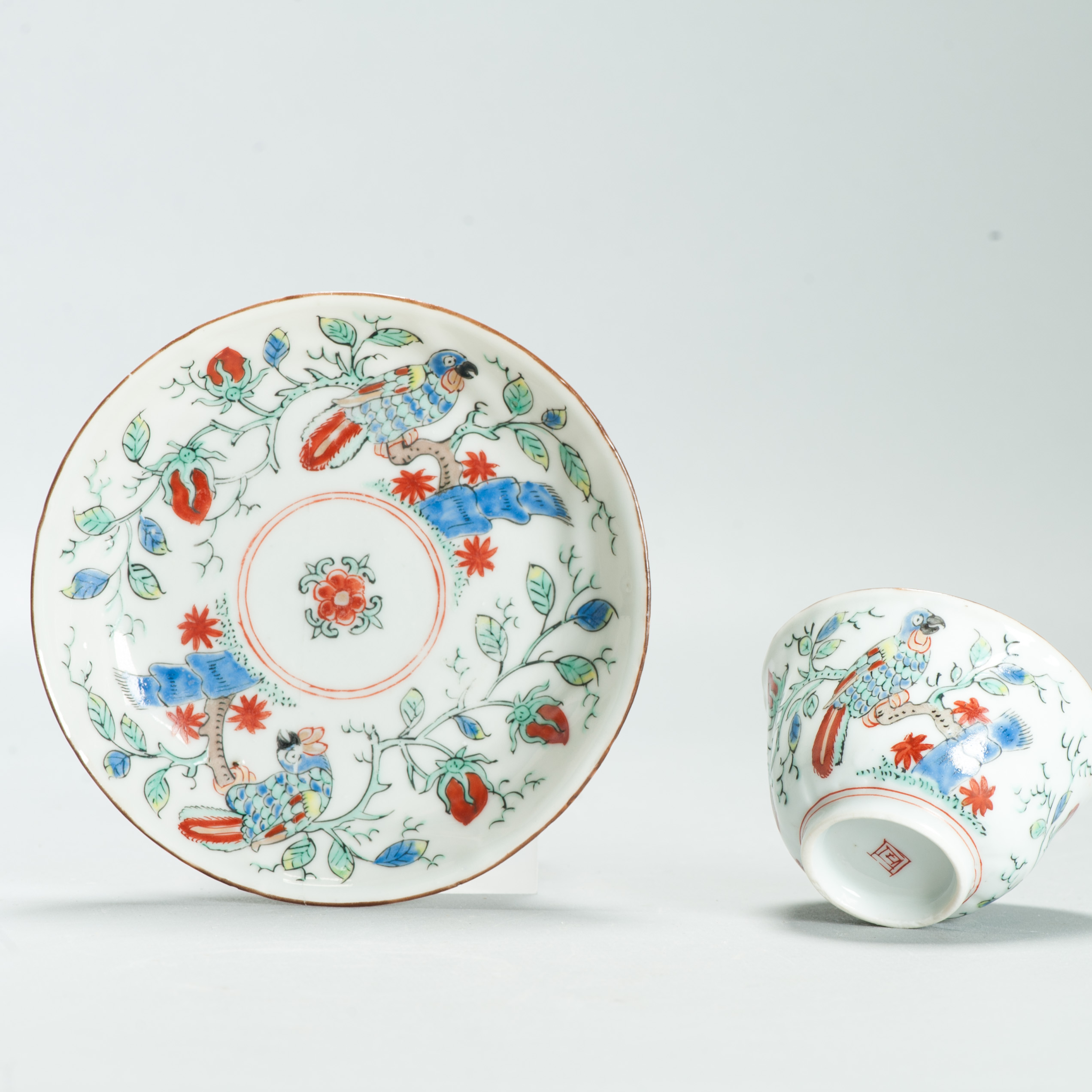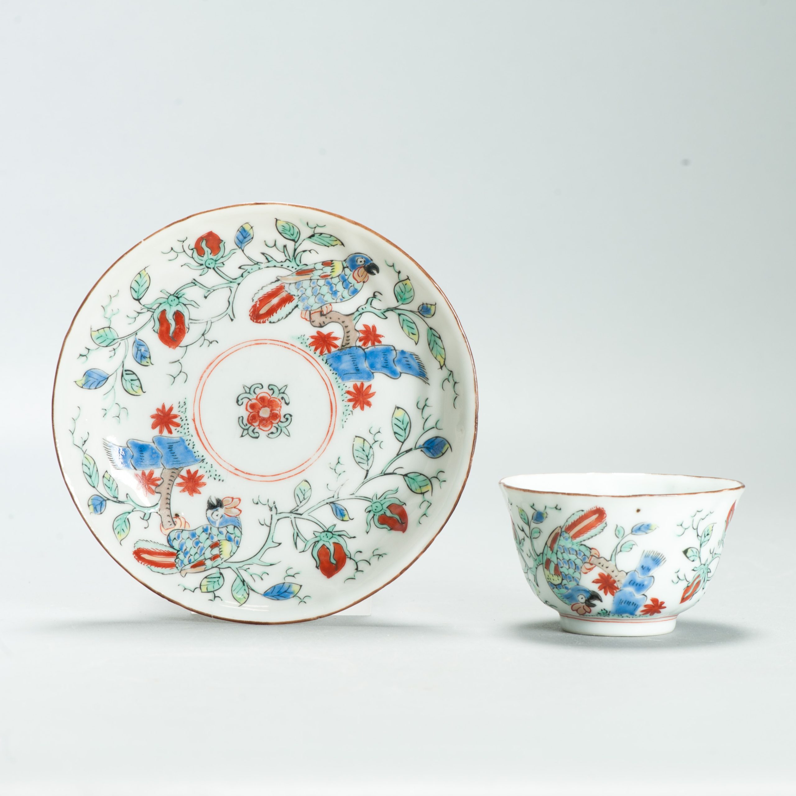 1651 Antique Chinese Kangxi Porcelain Tea cup/ Bowl with added Dutch Parrot Decoration